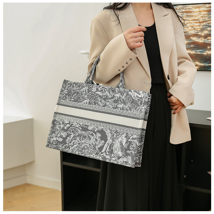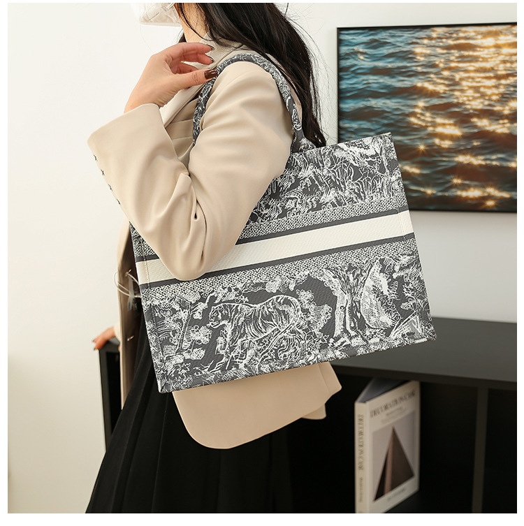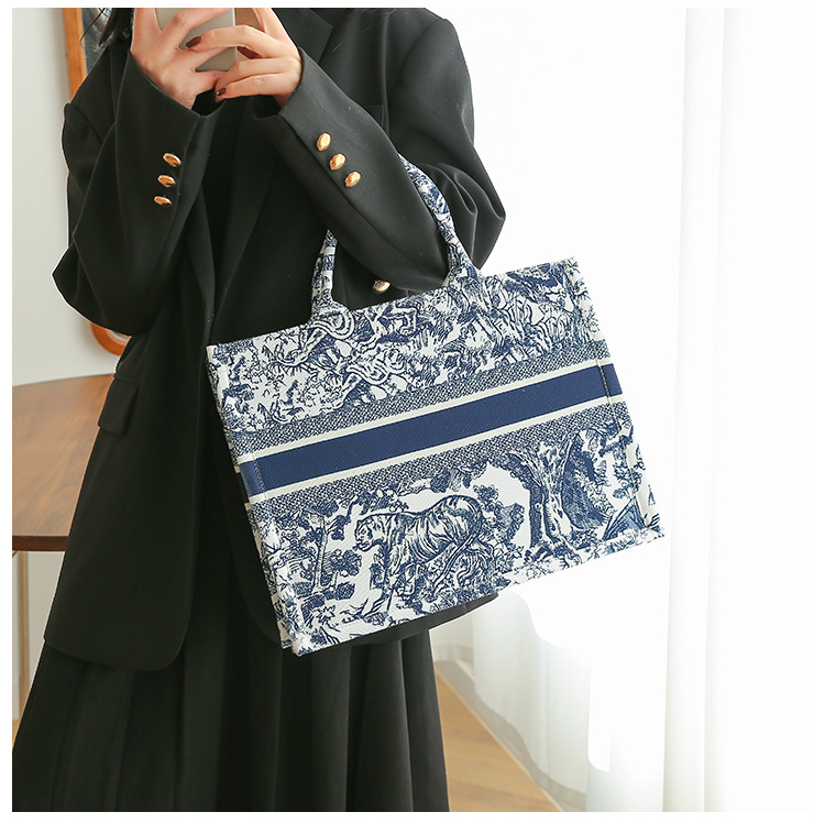 Túi Tote Nữ Phong Cách Quốc Gia Mới Jacquard Thêu Túi Đeo Vai Thời Trang Dung Tích Lớn Túi Mua Sắm Di Động Túi Vải Bố Nữ