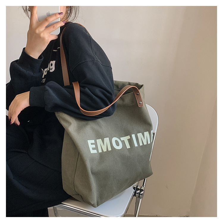 Túi tote vải canvas sức chứa lớn phong cách giản dị nữ 2023 thời trang mới phù hợp với túi đeo vai phiên bản Hàn Quốc