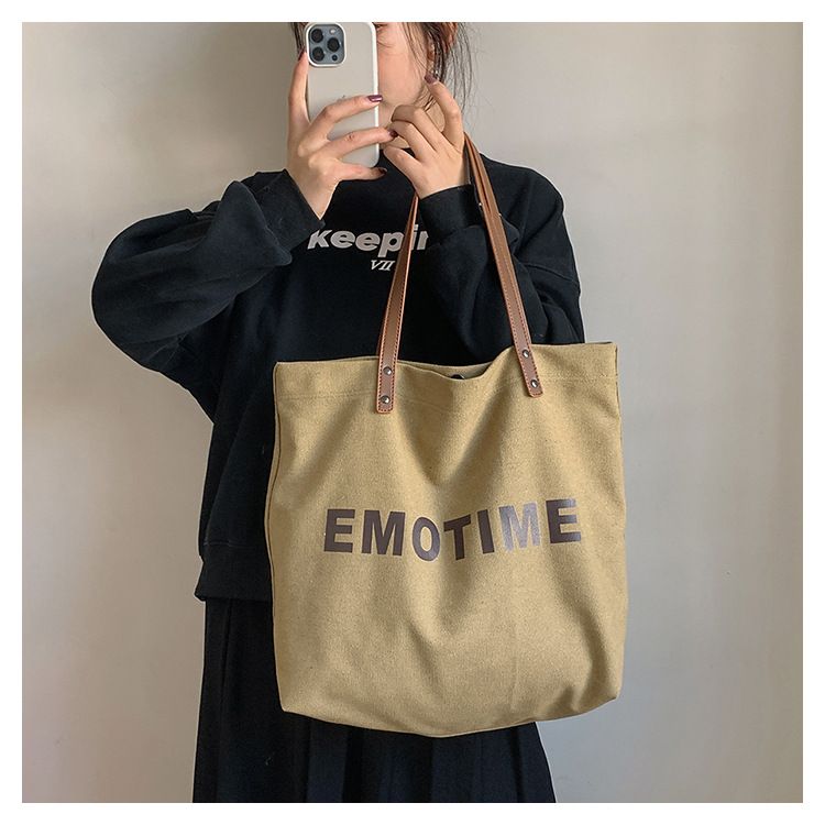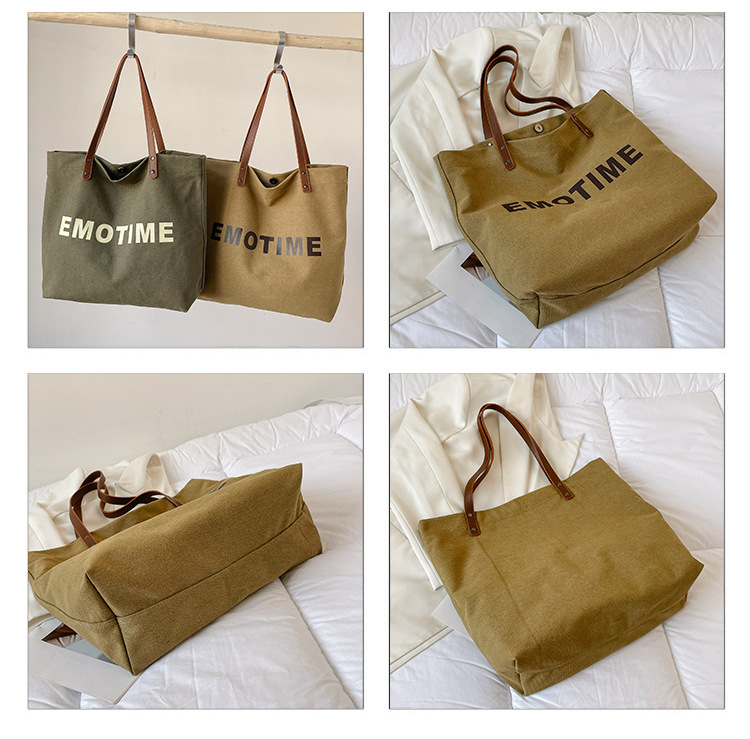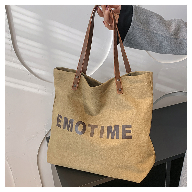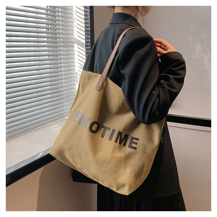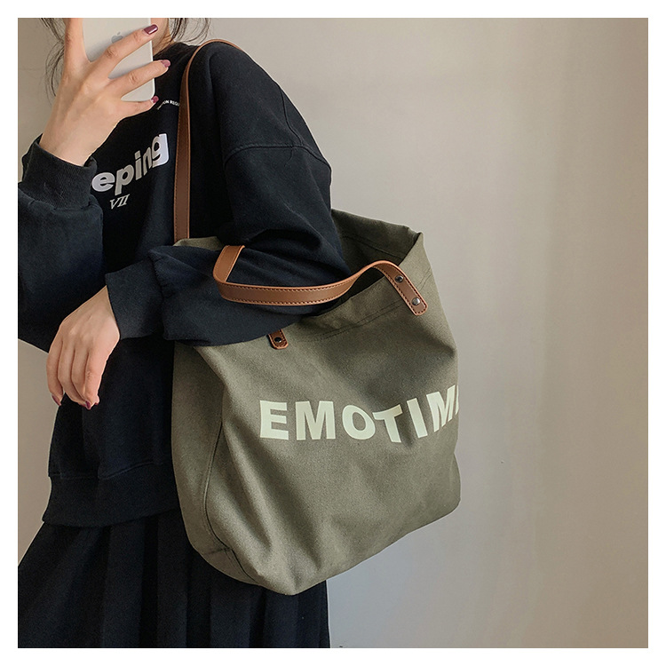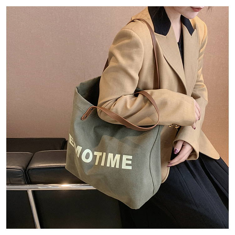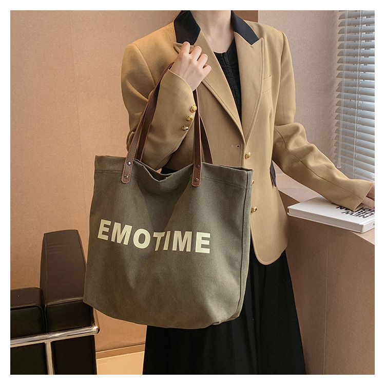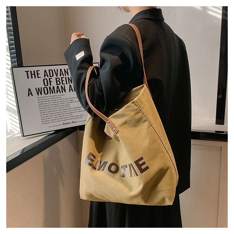 Túi tote vải canvas sức chứa lớn phong cách giản dị nữ 2023 thời trang mới phù hợp với túi đeo vai phiên bản Hàn Quốc