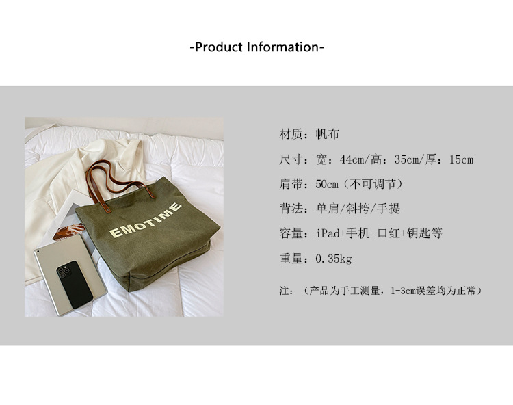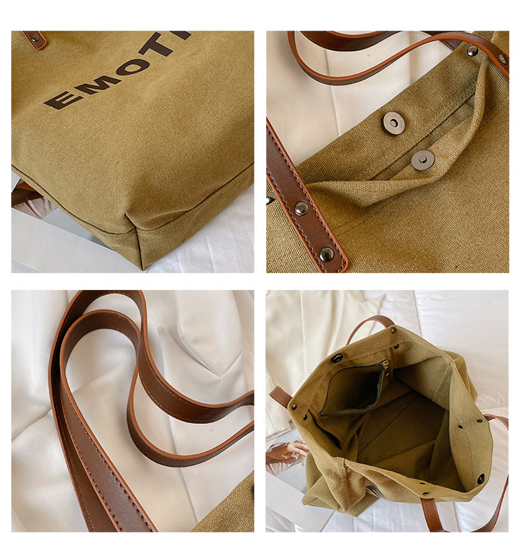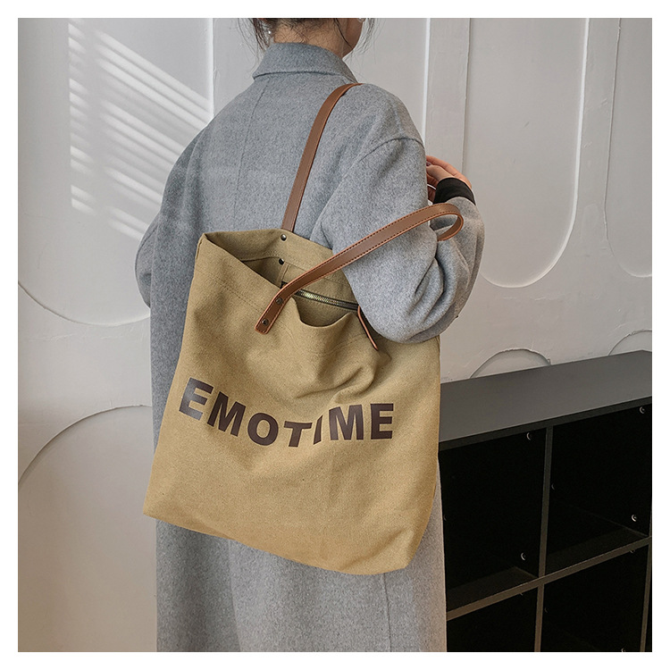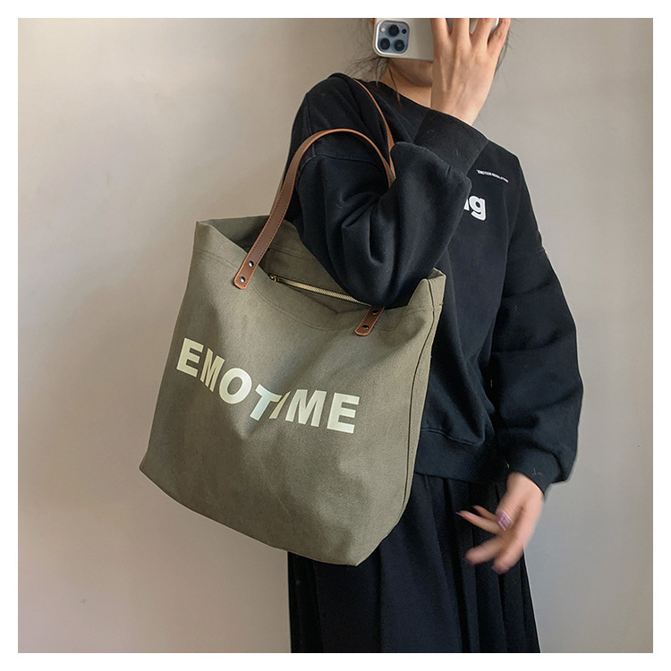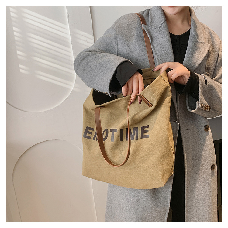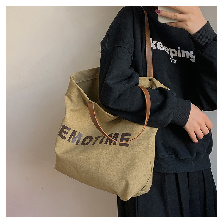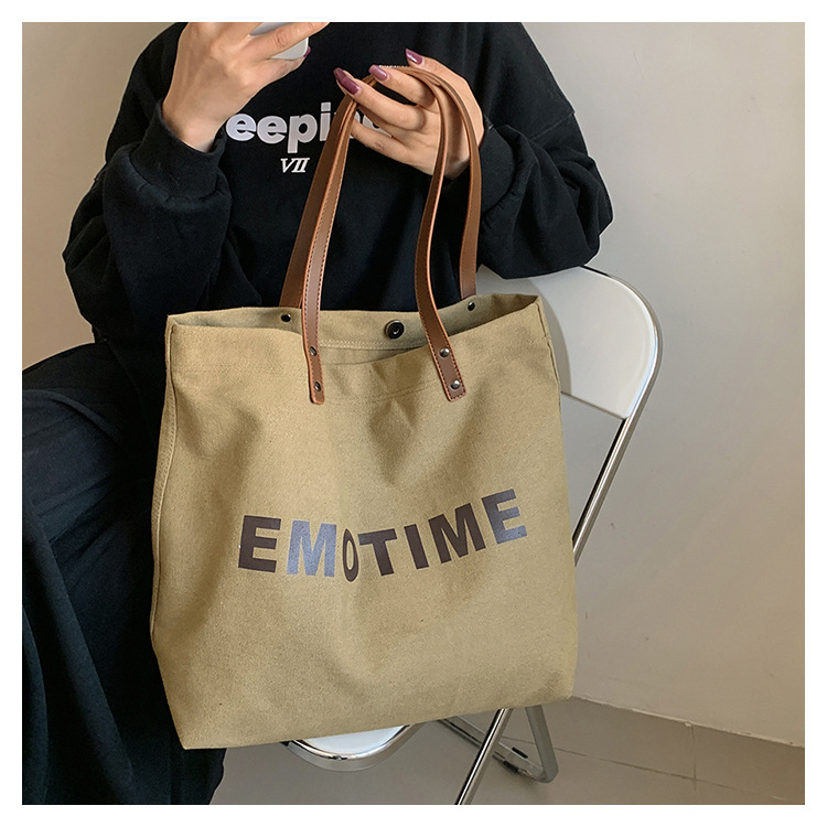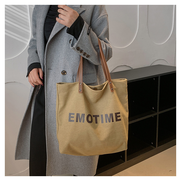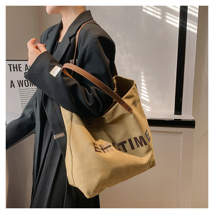 Túi tote vải canvas sức chứa lớn phong cách giản dị nữ 2023 thời trang mới phù hợp với túi đeo vai phiên bản Hàn Quốc
