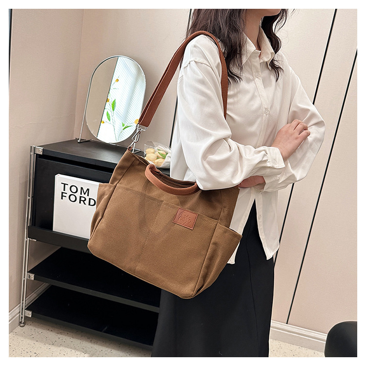 Túi vải canvas dung lượng lớn mới xuyên biên giới Túi đeo vai di động phong cách cổ điển cho nữ thời trang phù hợp với tất cả các mẫu túi tote bùng nổ bán buôn