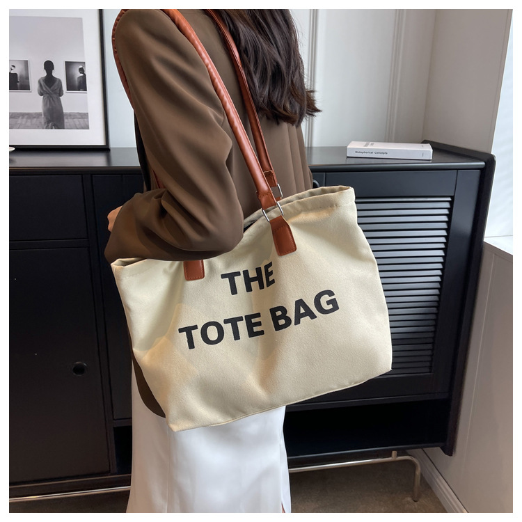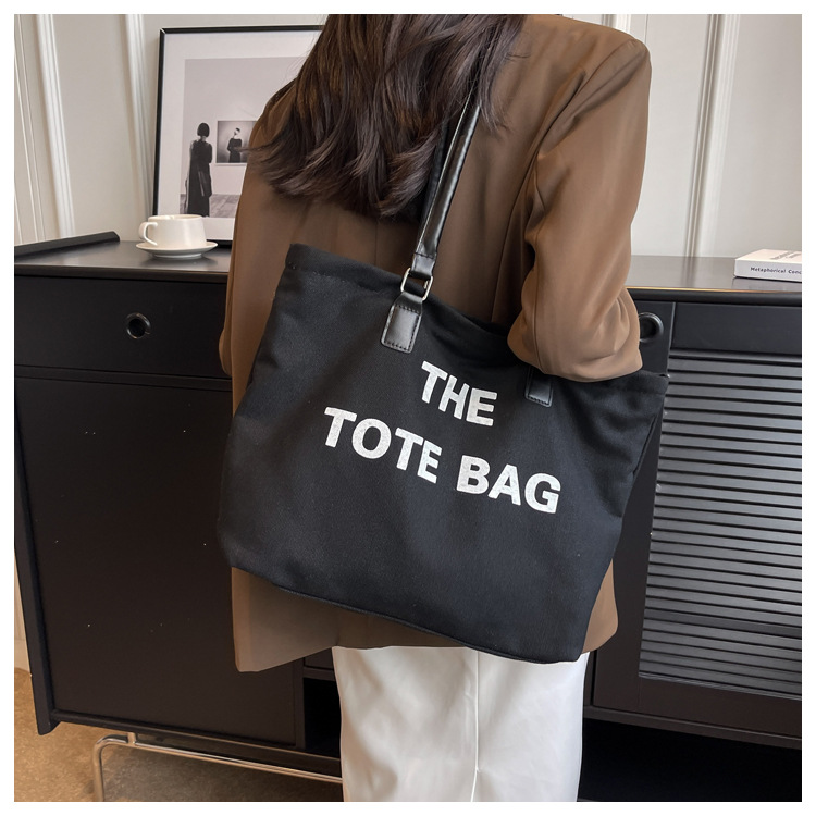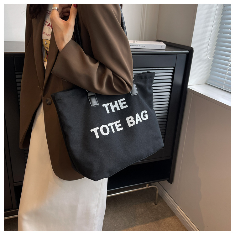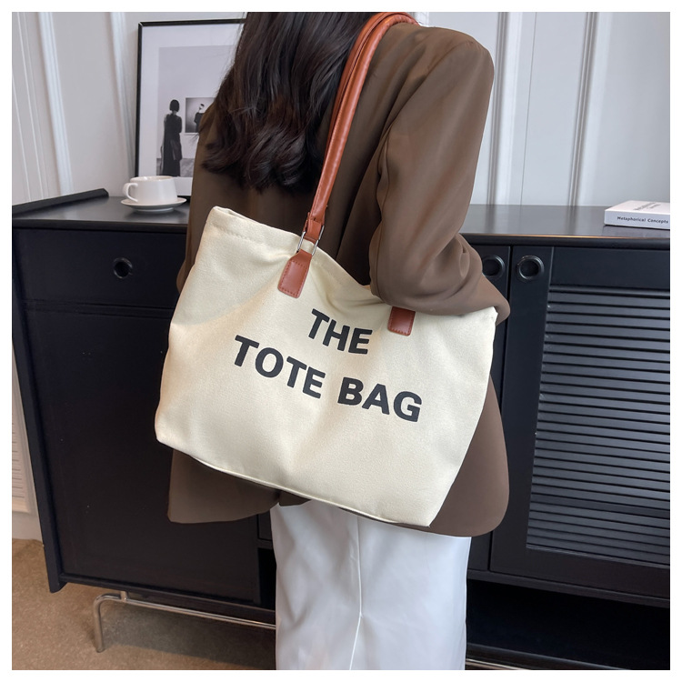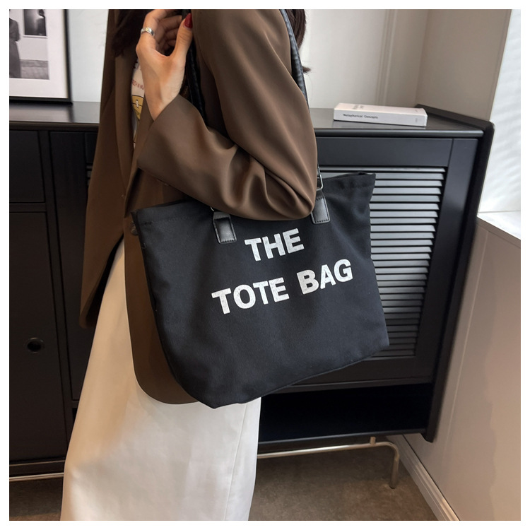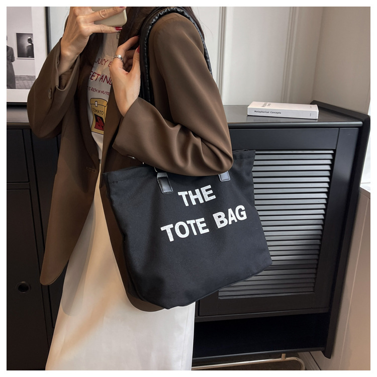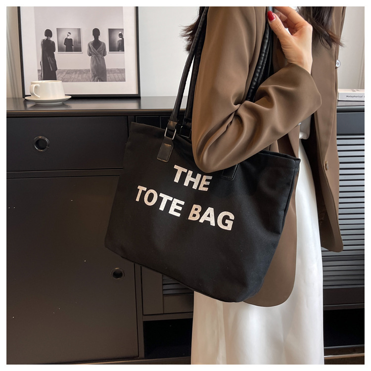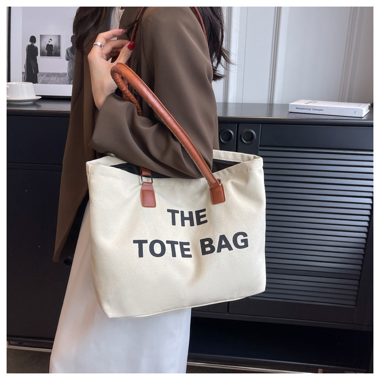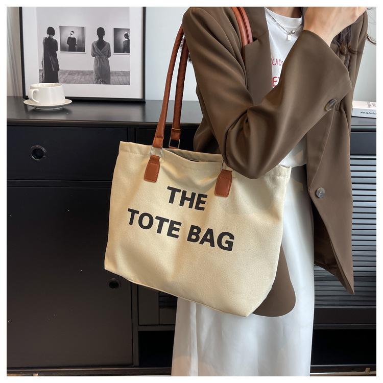 Túi vải canvas dung tích lớn nữ 2023 phong cách nước ngoài mới túi đeo vai thời trang kết cấu thường ngày in chữ túi xách