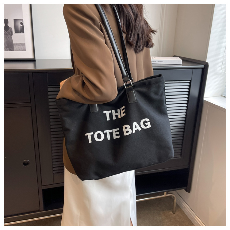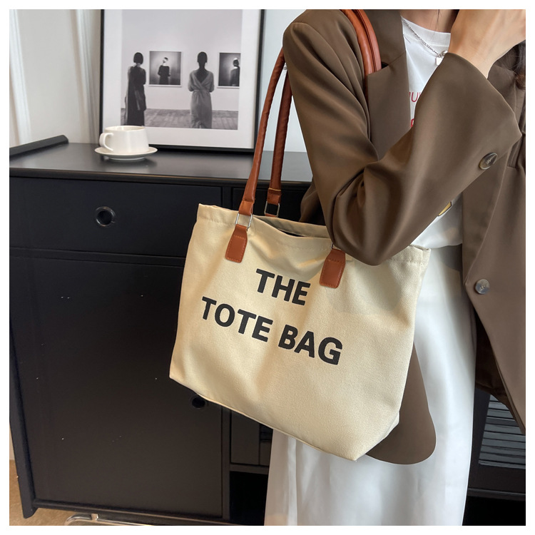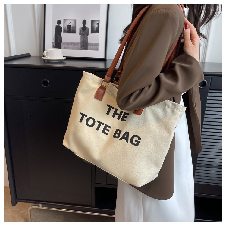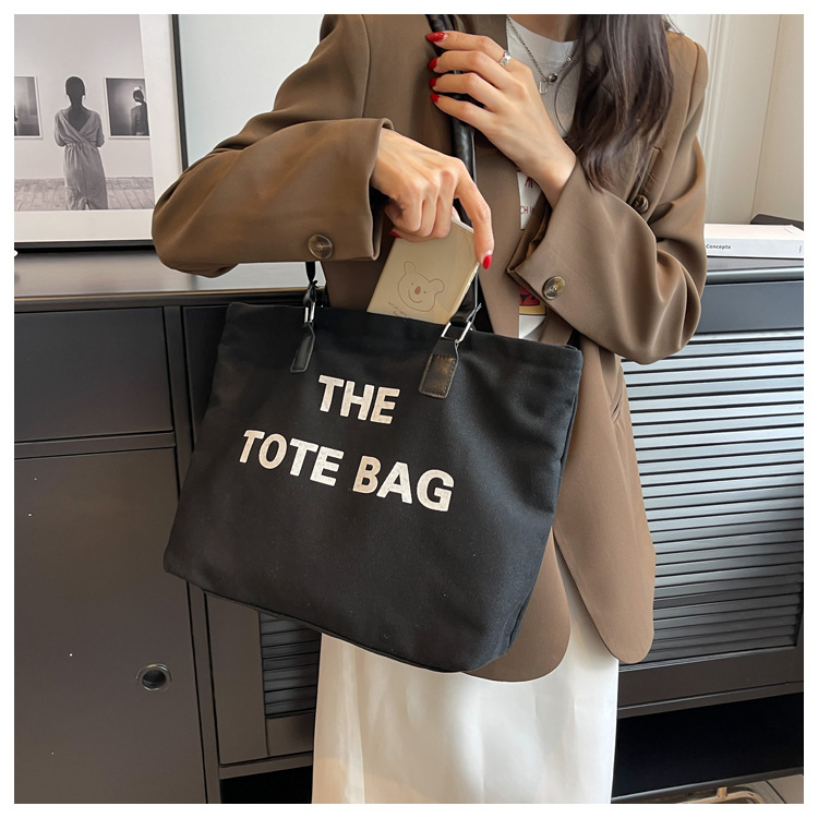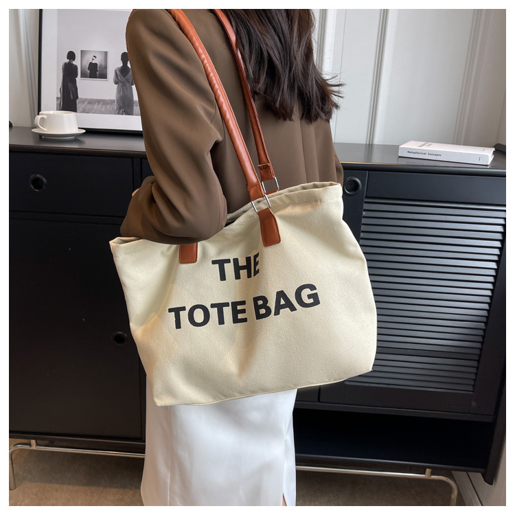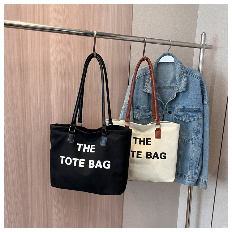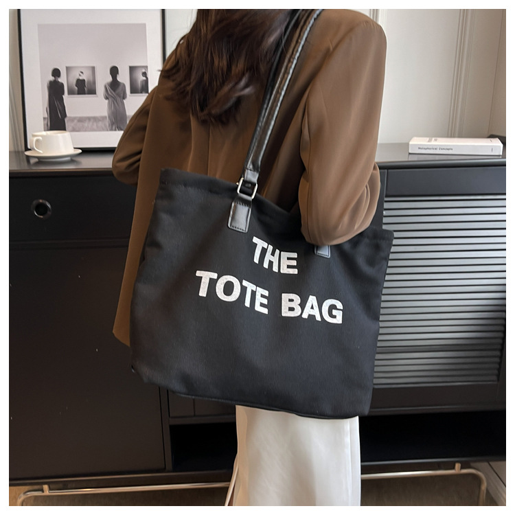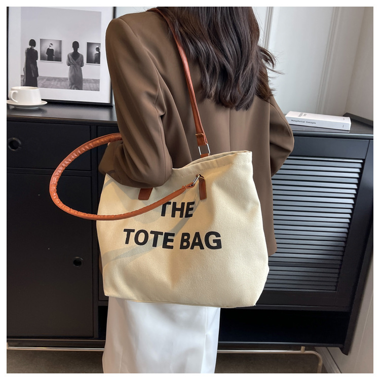 Túi vải canvas dung tích lớn nữ 2023 phong cách nước ngoài mới túi đeo vai thời trang kết cấu thường ngày in chữ túi xách