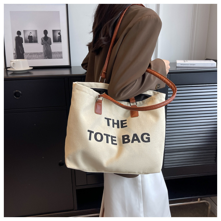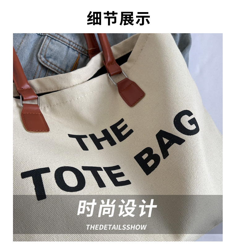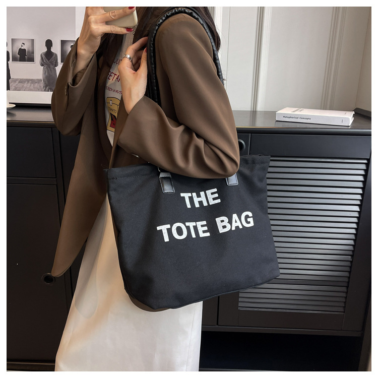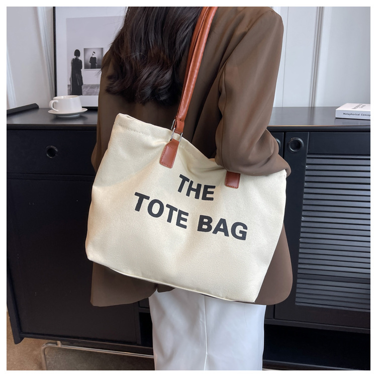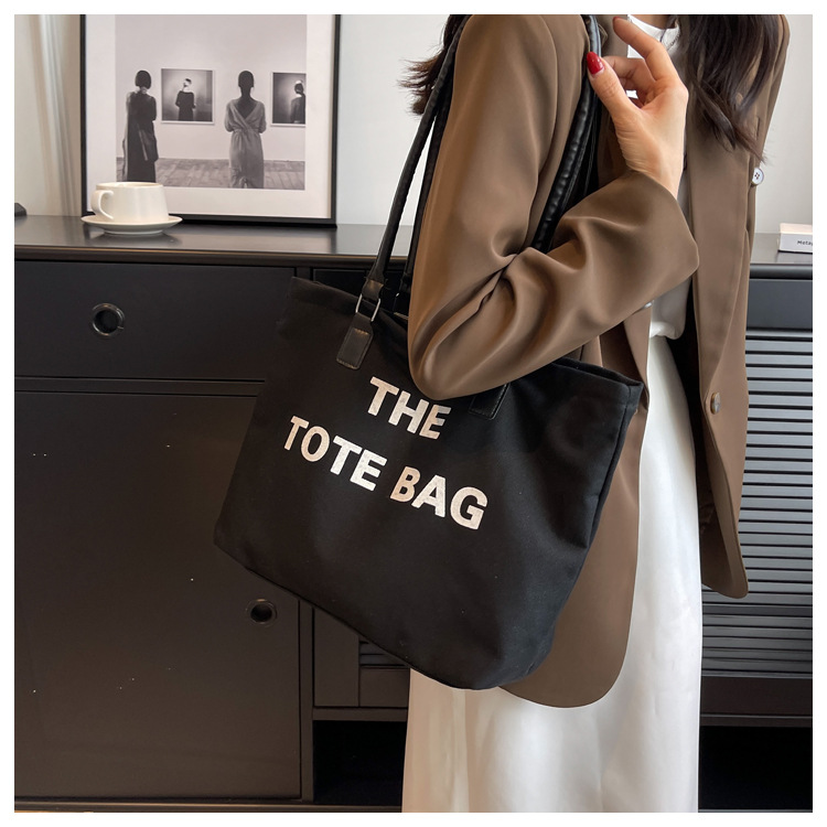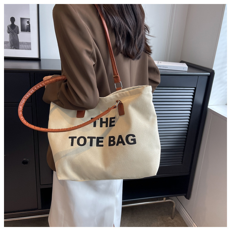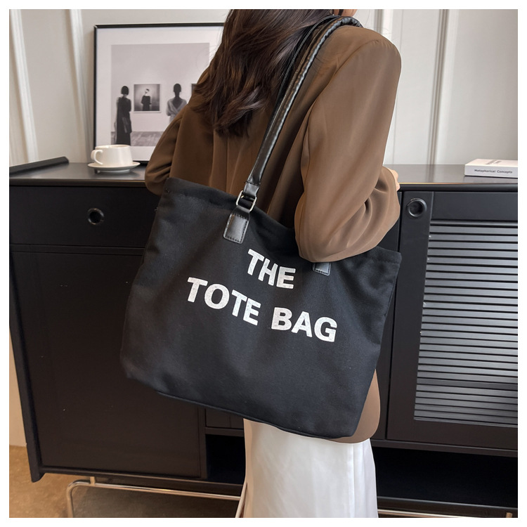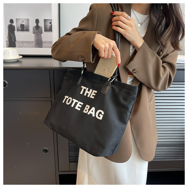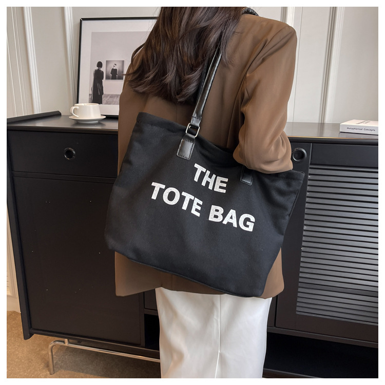 Túi vải canvas dung tích lớn nữ 2023 phong cách nước ngoài mới túi đeo vai thời trang kết cấu thường ngày in chữ túi xách