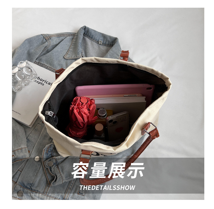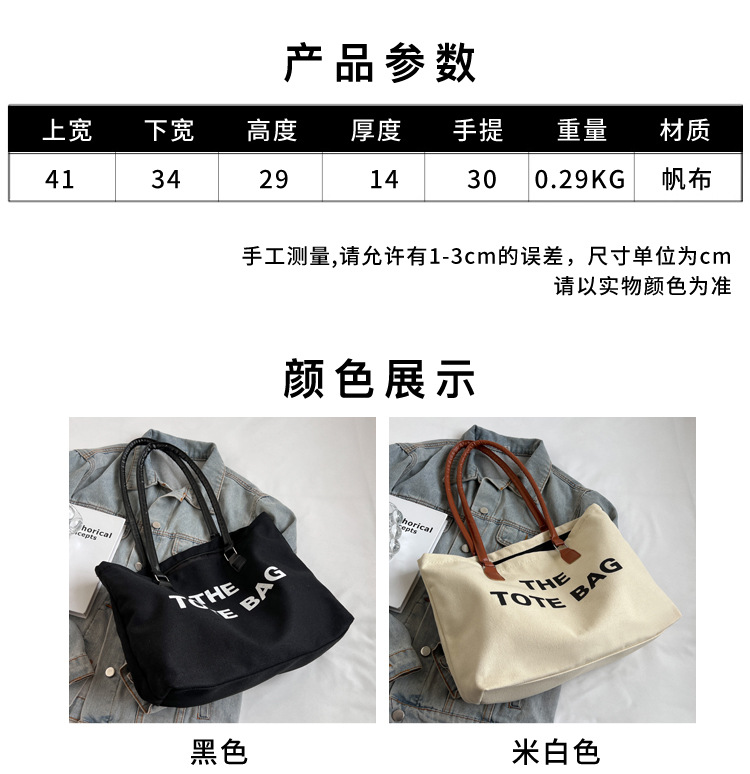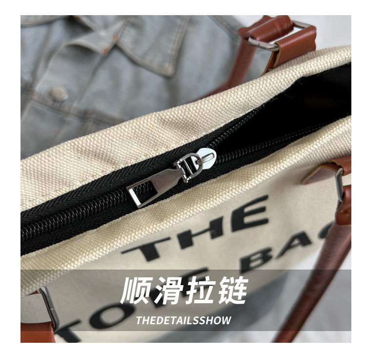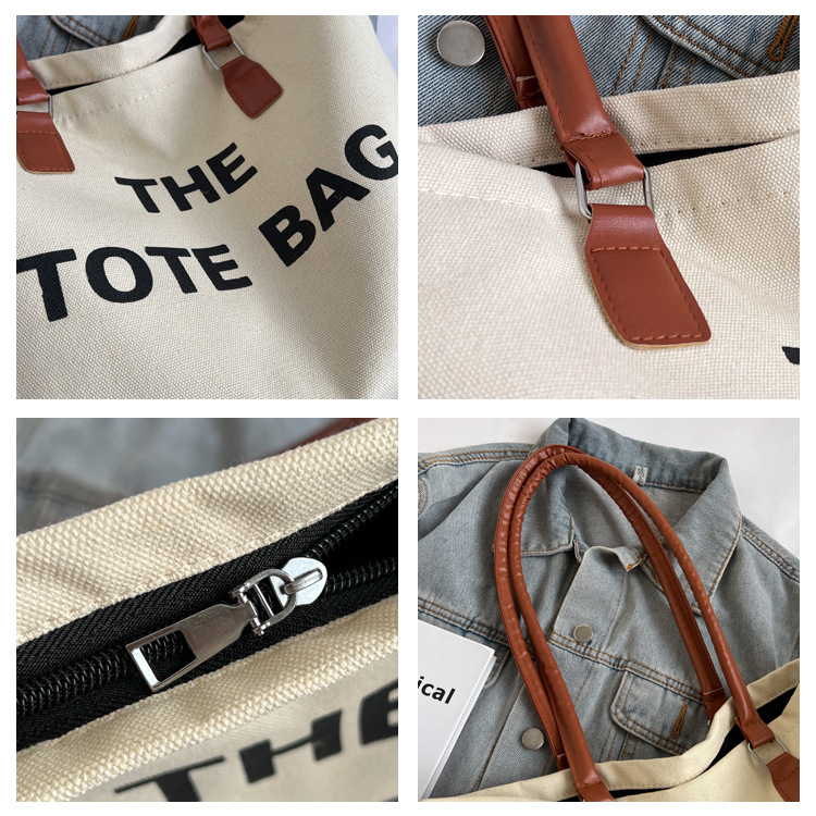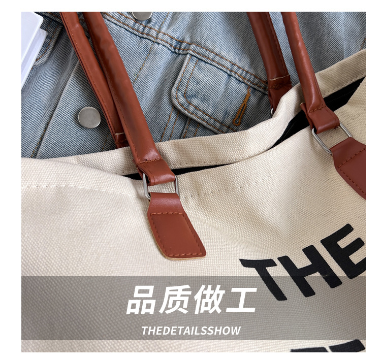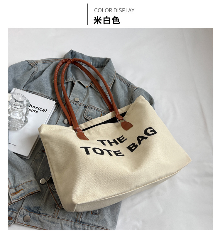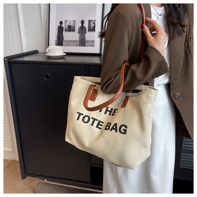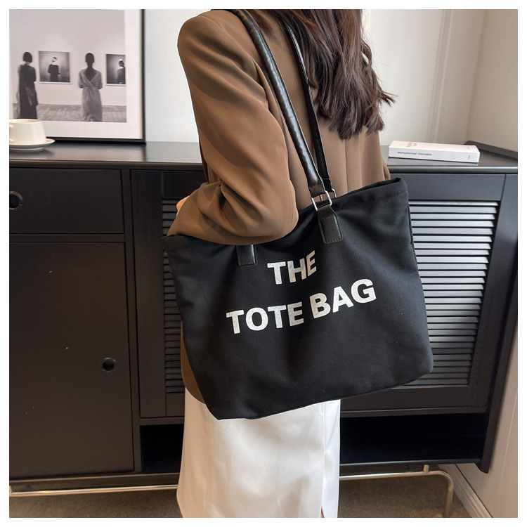 Túi vải canvas dung tích lớn nữ 2023 phong cách nước ngoài mới túi đeo vai thời trang kết cấu thường ngày in chữ túi xách