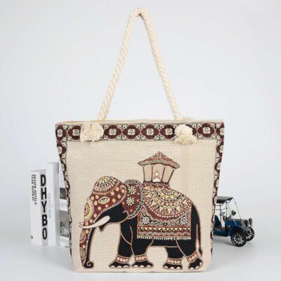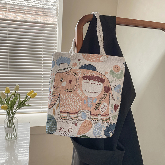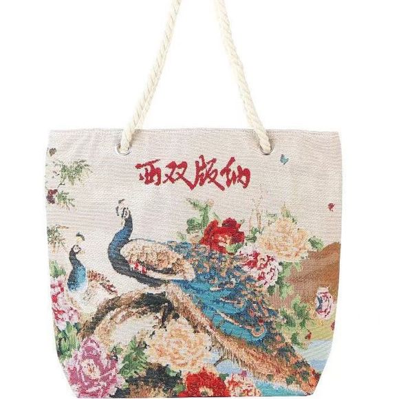 Túi vải thêu hình con công hai mặt phong cách dân tộc túi dây dày nữ phát sóng trực tiếp túi vải canvas thêu con công dung tích lớn túi đeo vai gian hàng