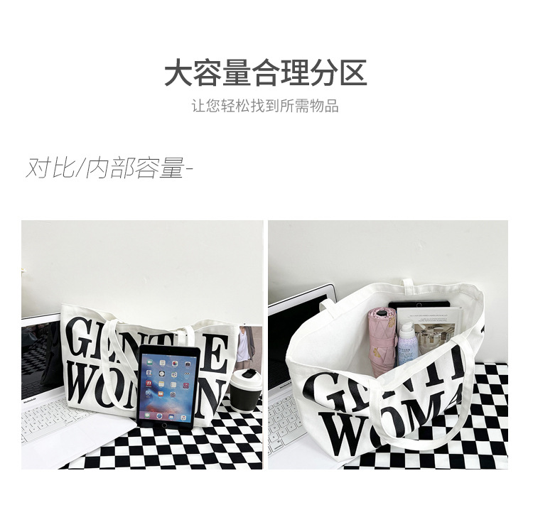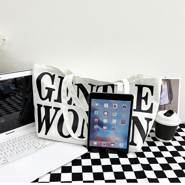 Kích thước hành lý: Lớn Chất liệu lót: Polyester Mã sản phẩm: XFY_5178 Thương hiệu: – Cảnh áp dụng: Sắp xếp hàng ngày Màu sắc: Trắng/Đen/Đen Phong cách hợp thời trang: Túi tote Loại túi bên ngoài: Túi vá bên trong Thương hiệu riêng được ủy quyền: Không có danh sách Năm mùa: Summer 2023 Độ cứng: Mềm Chất liệu: Canvas Hình dạng túi: Ngang, Vuông Phương pháp mở: Mở Các yếu tố phổ biến: Chữ cái/Chỉ khâu/Chỉ khâu Phong cách: Xu hướng đường phố Số lượng dây đeo vai: Có đôi hoặc không Lớp giữa: không
