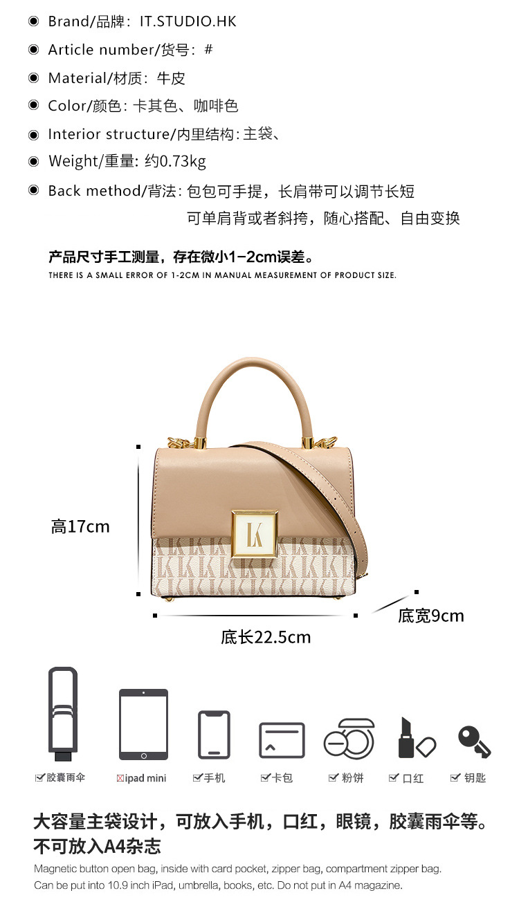 Túi xách da Hồng Kông túi xách nữ niche cao cấp 2023 thời trang mới mùa hè Messenger túi vuông nhỏ
