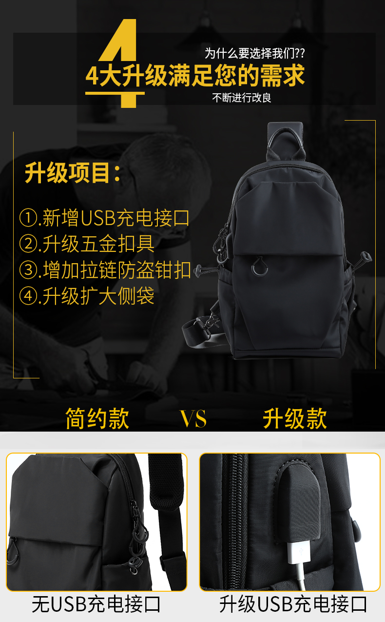 Túi xách nam Hồng Kông đi ra ngoài túi trước ngực có sức chứa lớn thường xuyên đa chức năng ba lô nhỏ đeo chéo vai túi đeo chéo thương hiệu thủy triều