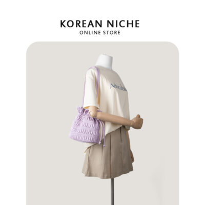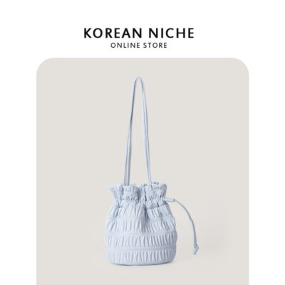 Túi xách nữ 2023 thiết kế thích hợp mới của Hàn Quốc túi đeo vai xếp li bằng da mềm đơn giản túi xô dây rút phù hợp với tất cả