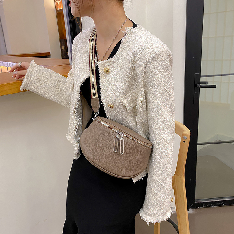 Túi xách nữ bằng da thật phong cách mới Túi yên ngựa bằng da bò lớp trên cùng của phụ nữ Túi xách nữ hợp thời trang Túi đeo ngực đơn giản thời trang Túi Messenger một vai cho nữ