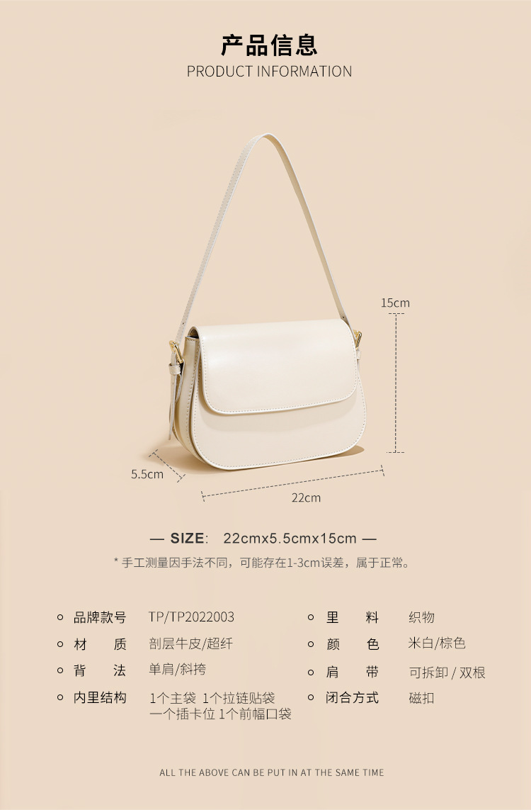 Kích thước túi: Nhỏ Chất liệu lót: Vải Mã sản phẩm: TP2022003 Thương hiệu: TOMATO&POTATO Cảnh áp dụng: Sắp xếp hàng ngày Màu sắc: Nâu/Trắng/Túi màu trắng Phong cách xu hướng: Túi vuông nhỏ Loại túi bên ngoài: Không Thương hiệu riêng được ủy quyền: Có Đặc điểm vỏ: Da bò hai lớp Năm và mùa niêm yết: Mùa xuân 2022 Độ cứng: trung bình đến mềm Chất liệu: da thật Hình dạng hành lý: ngang và vuông Phương pháp mở: túi khóa từ Cấu trúc bên trong: túi ẩn có khóa kéo/túi đựng tài liệu/túi đựng tài liệu Các yếu tố phổ biến : Kiểu đường may: đơn giản thành thị Số lượng dây đeo vai: đơn Có hoặc không có lớp đệm: không