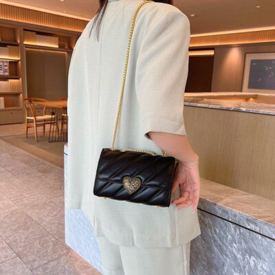 Túi xách nữ gió thơm nhỏ thời trang mùa hè 2023 trái tim đào mới túi vuông nhỏ đeo dây xích hợp thời trang Túi Messenger một vai