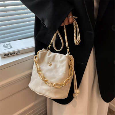 Túi xách nữ mới 2023 kết cấu hợp thời trang túi xô thời trang chuỗi hình thoi thích hợp phong cách nước ngoài túi đeo chéo một vai phù hợp với tất cả