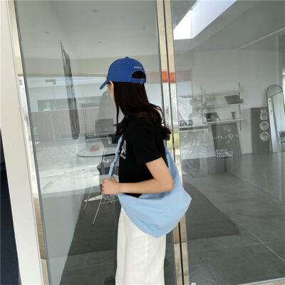 Túi xách nữ phiên bản Hàn Quốc mới túi đeo chéo một vai túi học sinh nylon túi bánh bao dây rút phong cách retro đơn giản