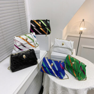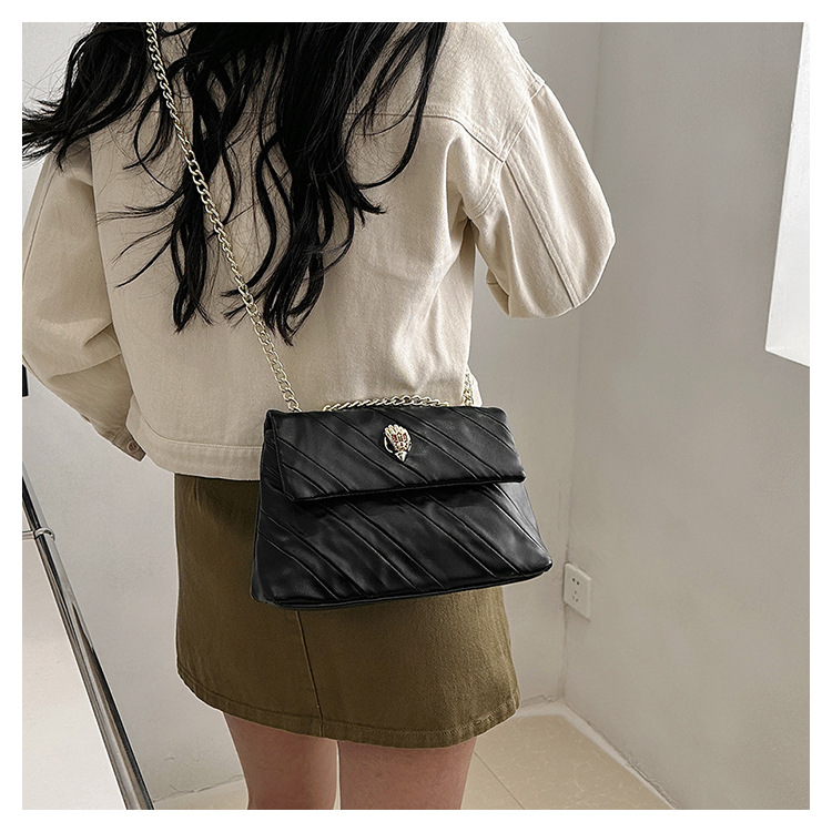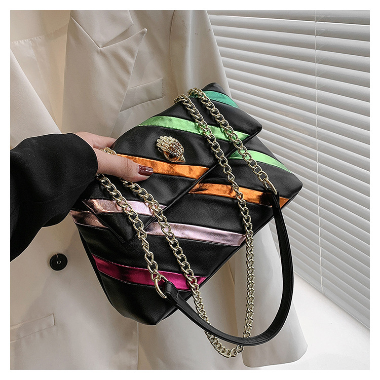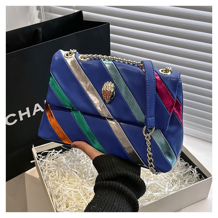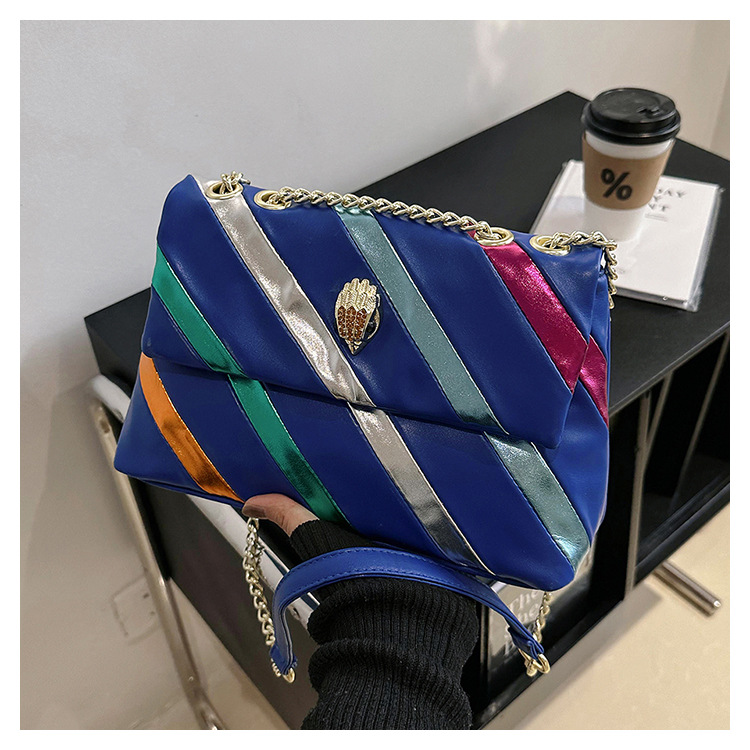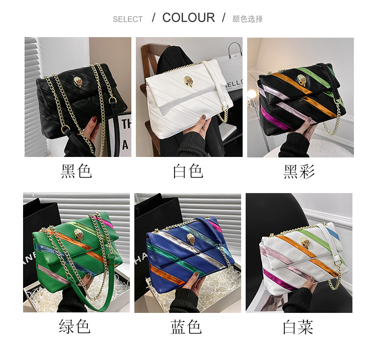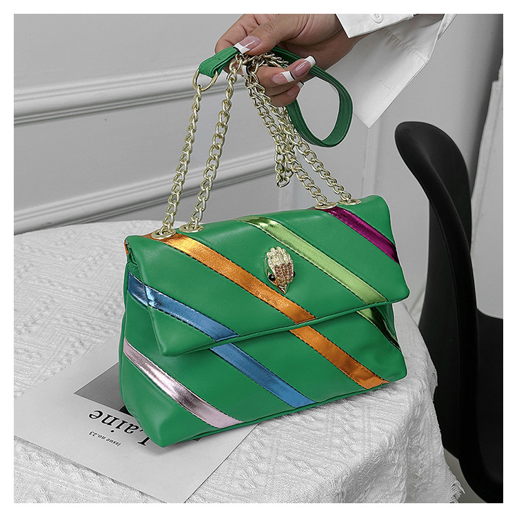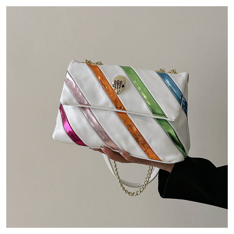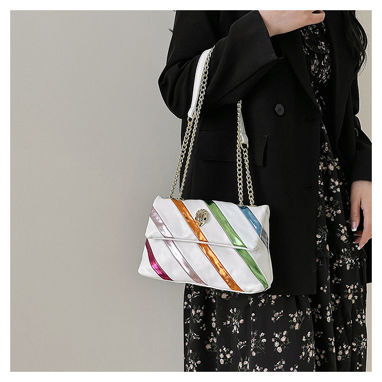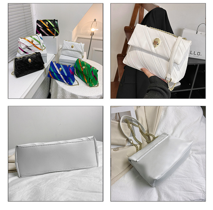Túi xách nữ thời trang ngoại thương mùa xuân 2023 mới hợp thời trang túi đeo vai đầu đại bàng dây chuyền sọc túi messenger