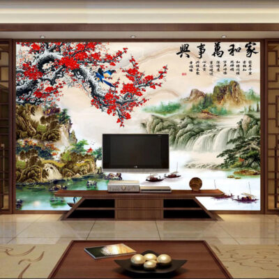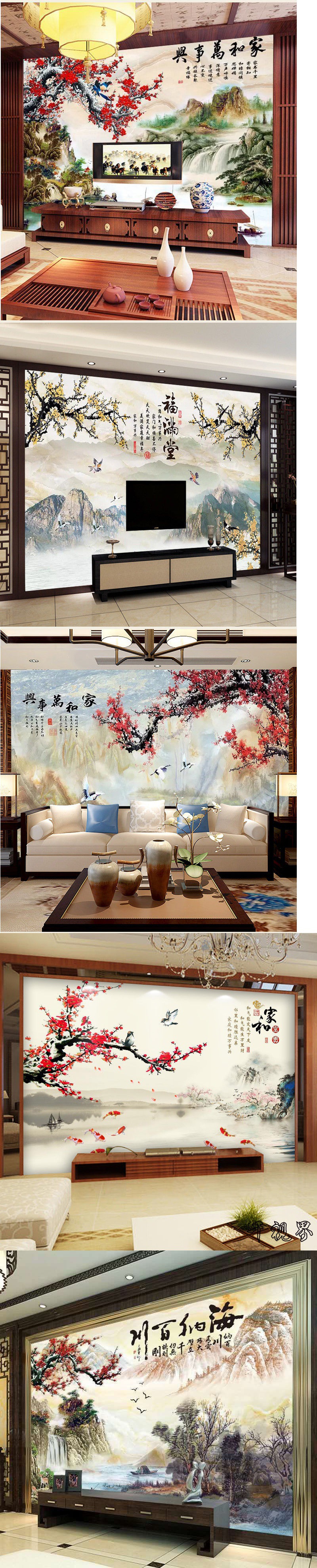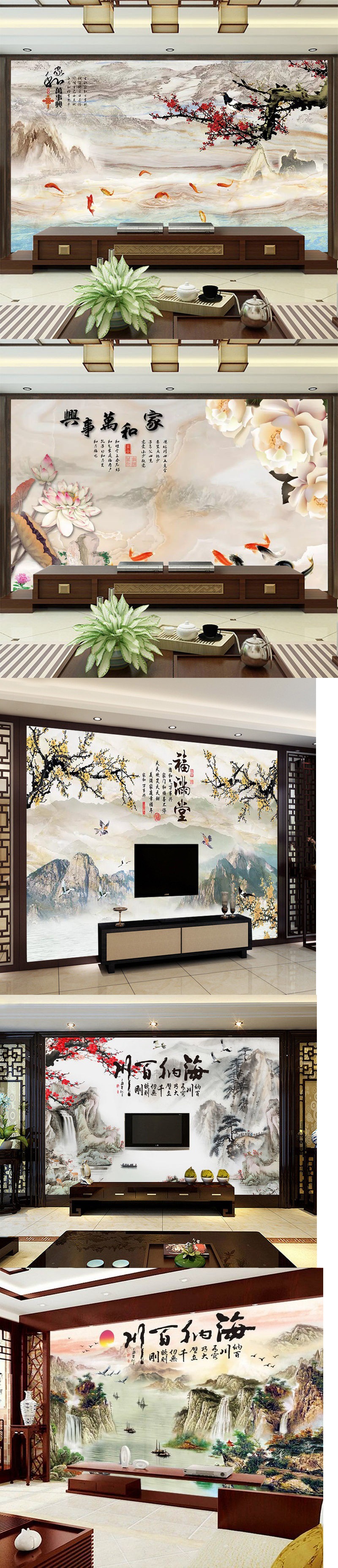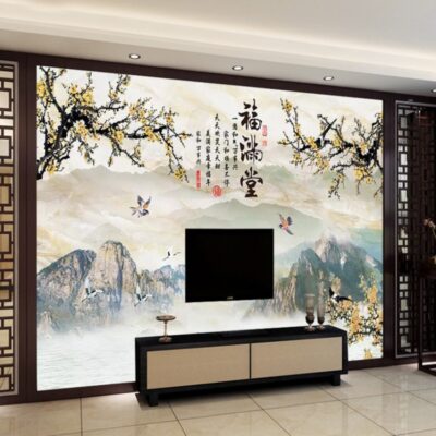 Tường tích hợp 8 hình nền TV ba chiều hình nền tường 3 bức tranh tường phù điêu hoa mận 6 giấy dán tường phong cảnh phòng khách phong cách Trung Quốc