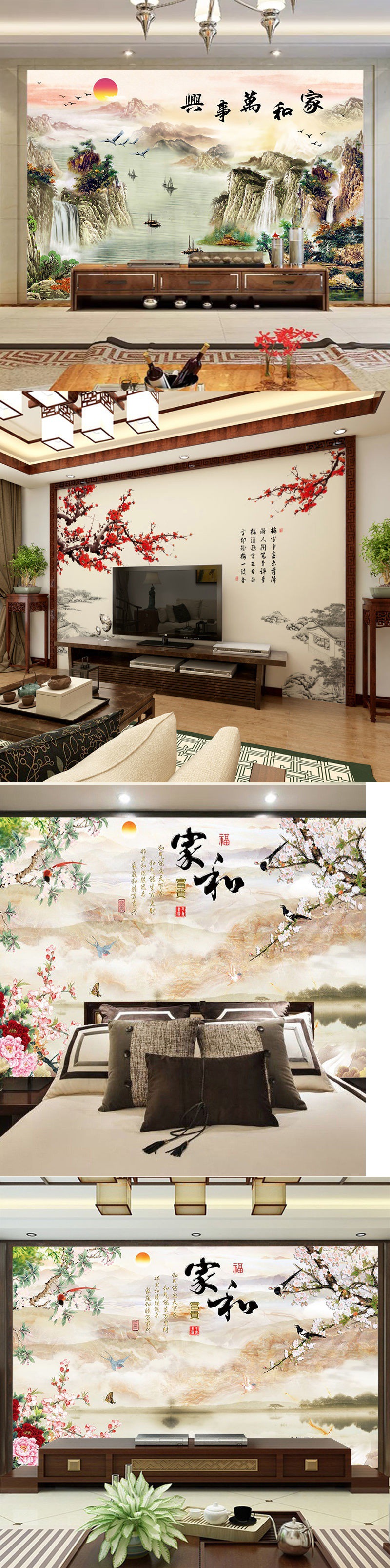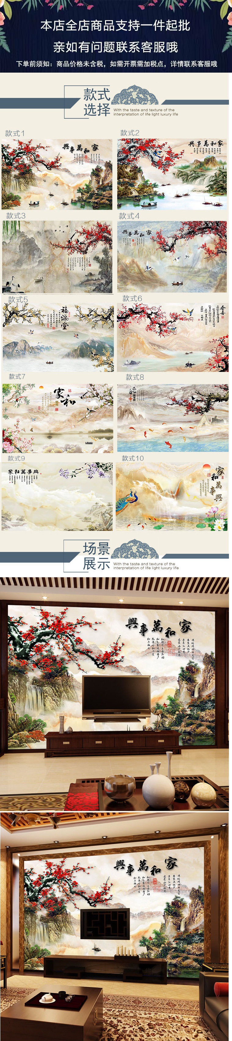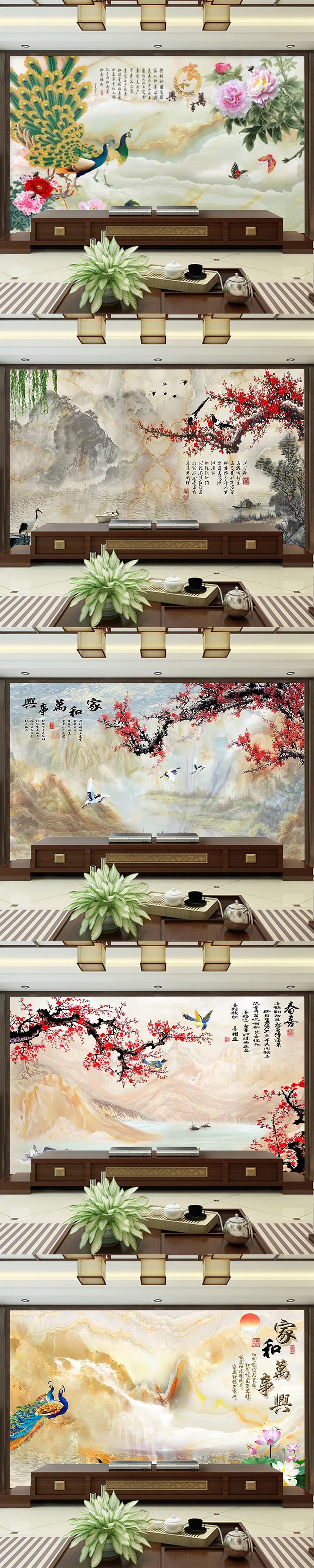 Tường tích hợp 8 hình nền TV ba chiều hình nền tường 3 bức tranh tường phù điêu hoa mận 6 giấy dán tường phong cảnh phòng khách phong cách Trung Quốc