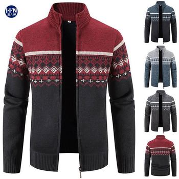 Tùy Chỉnh Dây Kéo Áo Len Ngoại Thương Nam Lông Cừu Dày Phối Màu Dệt Kim Cardigan Size Lớn Áo Len