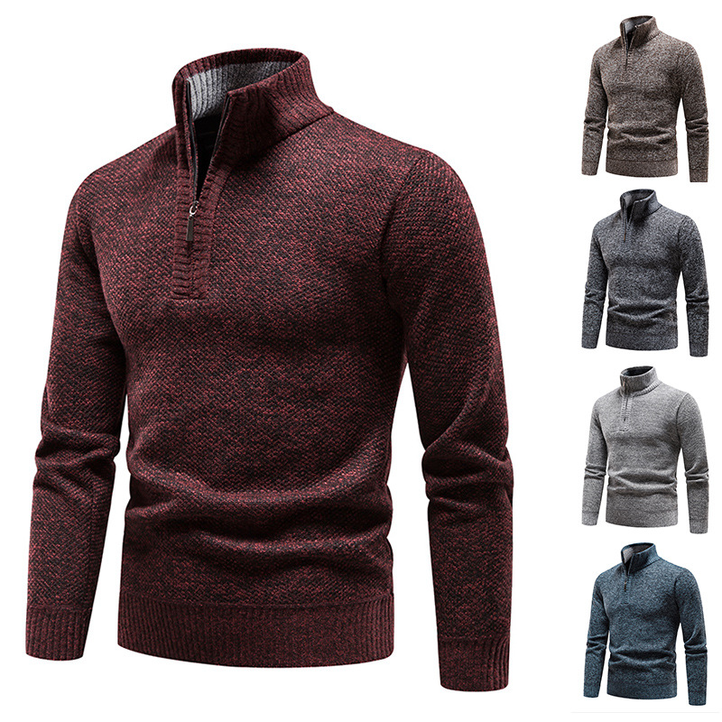 Tùy Chỉnh Dây Kéo Áo Len Ngoại Thương Nam Lông Cừu Dày Phối Màu Dệt Kim Cardigan Size Lớn Áo Len