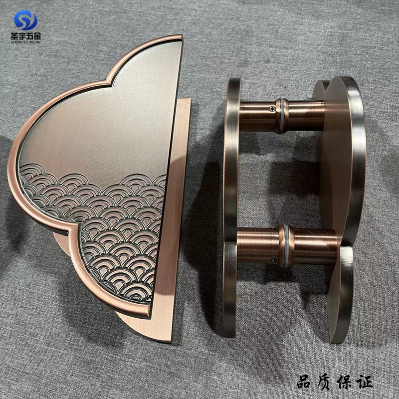 Tùy chỉnh LOGO tay nắm cửa hình bán nguyệt tay nắm cửa kính bằng đồng chạm khắc từ gỗ tay nắm cửa gỗ Xiangyun