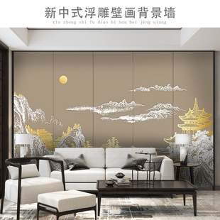 Tùy chỉnh mới phong cách Trung Quốc truyền hình nền bức tranh tường trang trí phòng khách hàng ngàn dặm của sông và núi phù điêu kết cấu tường nền được chạm khắc tinh xảo