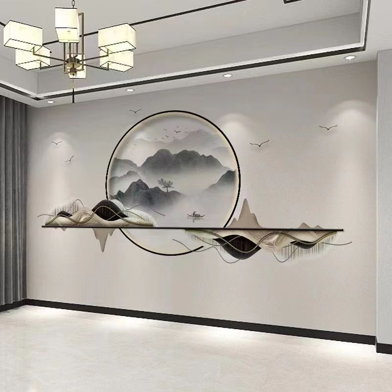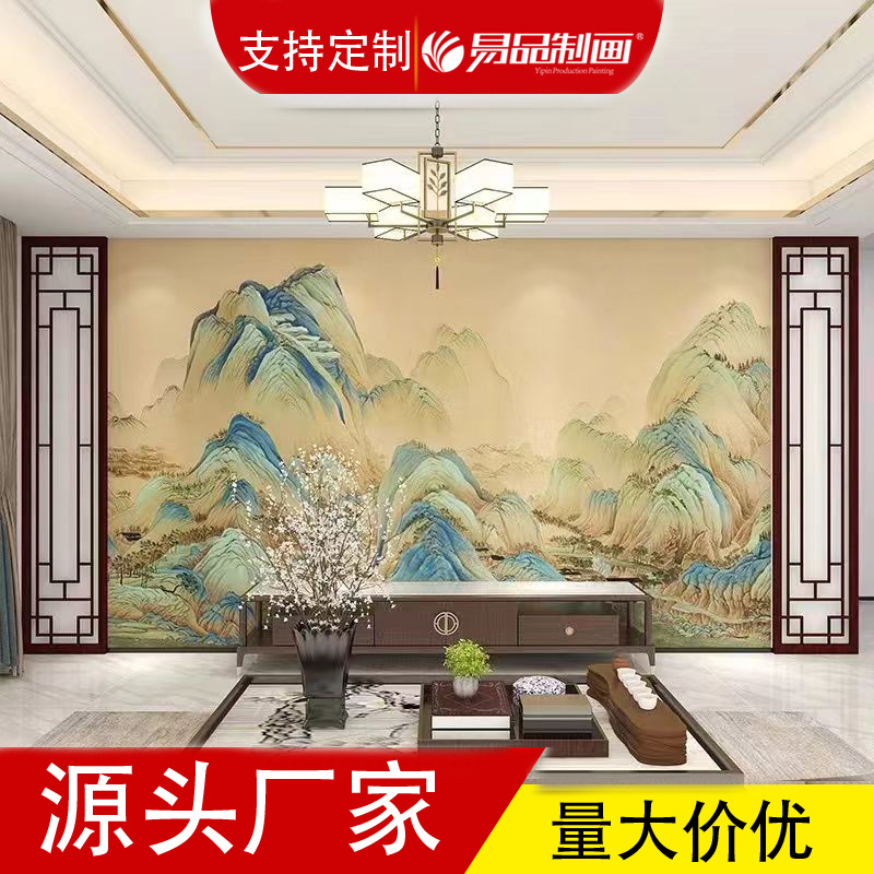 Tùy chỉnh mới phong cách Trung Quốc truyền hình nền bức tranh tường trang trí phòng khách hàng ngàn dặm của sông và núi phù điêu kết cấu tường nền được chạm khắc tinh xảo
