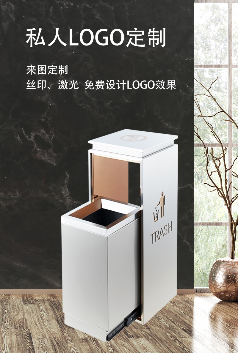 Tùy chỉnh sảnh khách sạn thùng rác thép không gỉ rỗng thùng rác trung tâm mua sắm khách sạn dọc với gạt tàn thùng nhỏ chống dấu vân tay