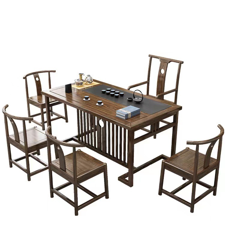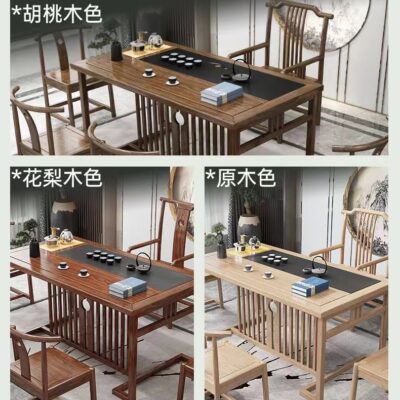 [Tùy chọn 1-2 mét] Bàn trà gỗ nguyên khối kết hợp Bàn trà văn phòng tại nhà Bàn trà uống trà Bàn trà một bộ