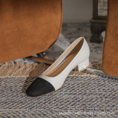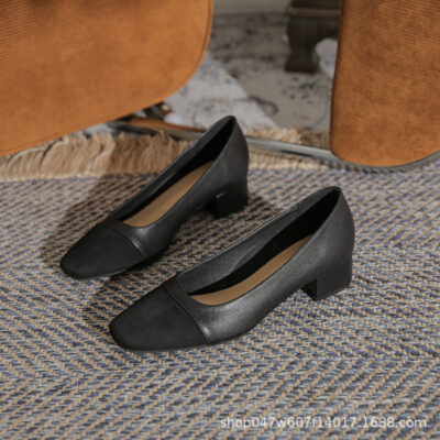 U5588 Giày Gót Dày Đơn Nữ Bề Mặt Bóng 2023 Màu Mới Phối Mũi Vuông Cao Gót 3.5 Cm Giày Nữ Phong Cách Nóng Bỏng