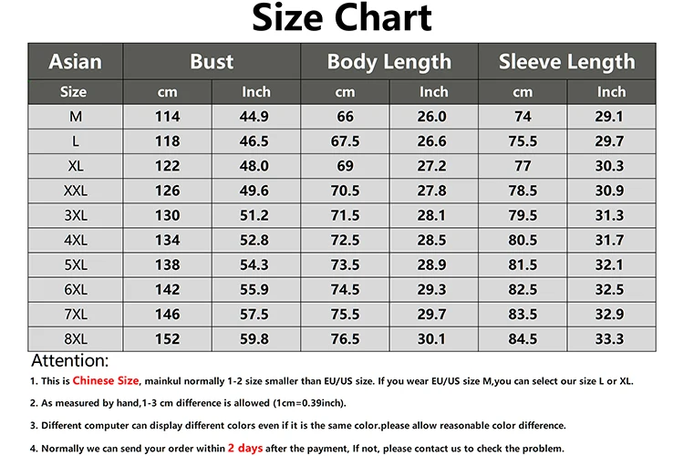 Size 6XL: weight 105kg-115kg, height 185-190cm
