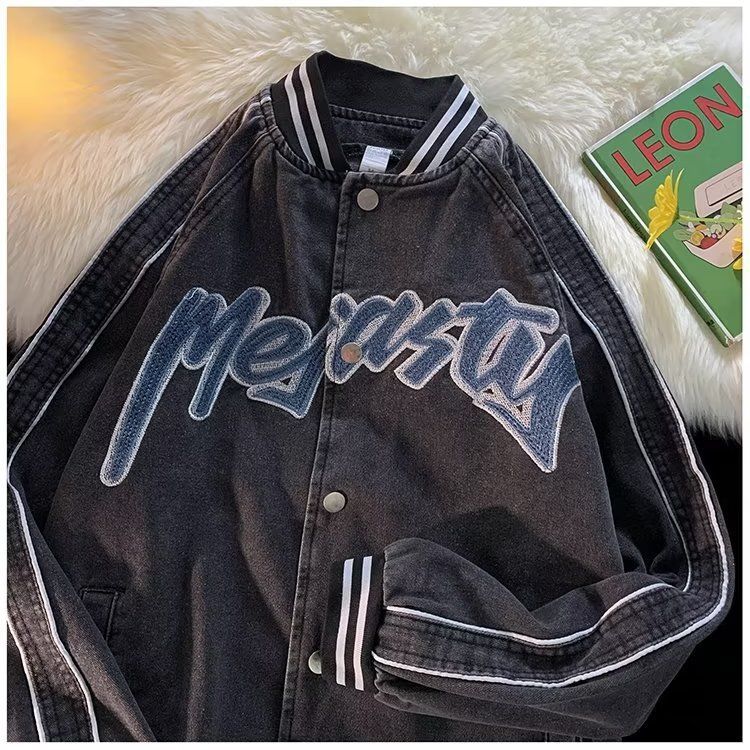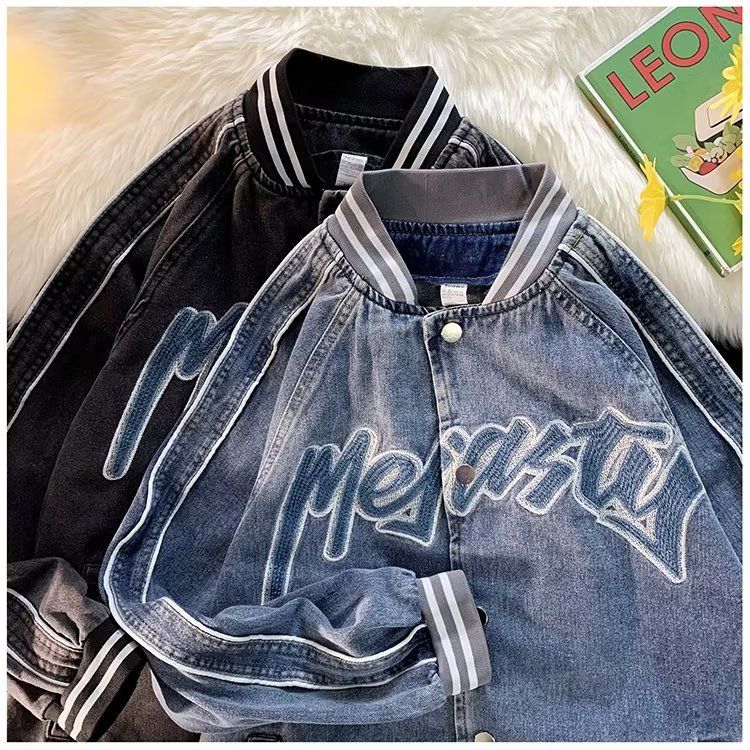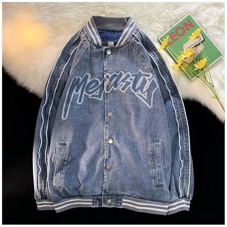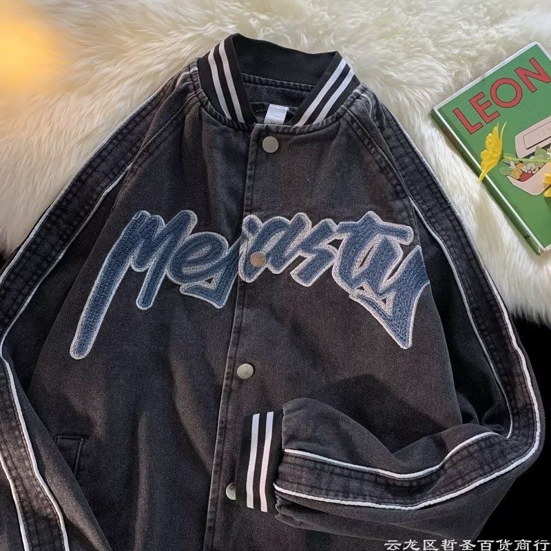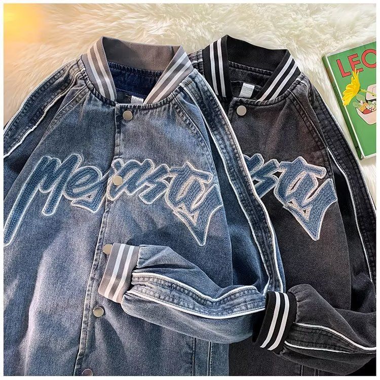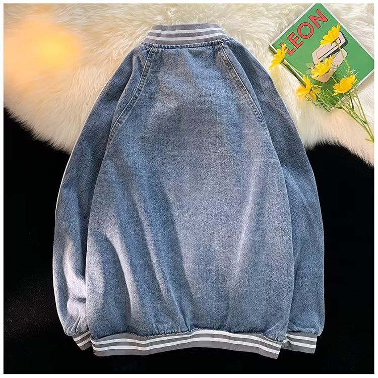 UM có gạo Áo khoác denim nam mùa xuân và mùa thu Hồng Kông quần áo cặp đôi rời bên trong áo khoác bóng chày đẹp trai