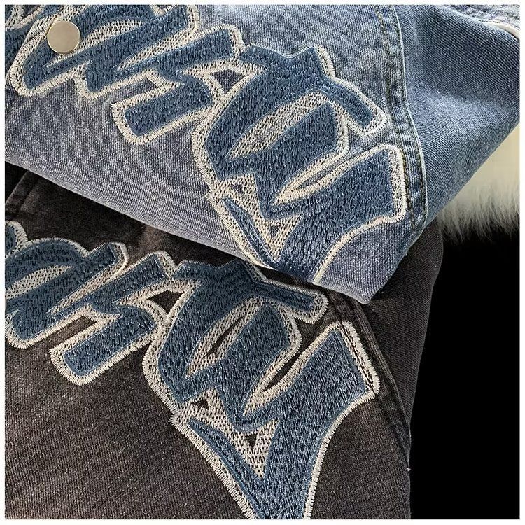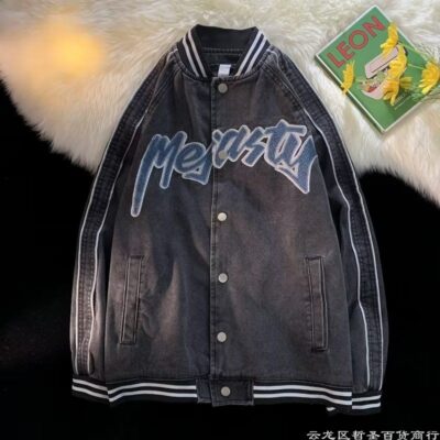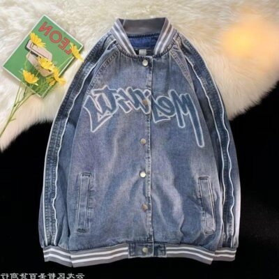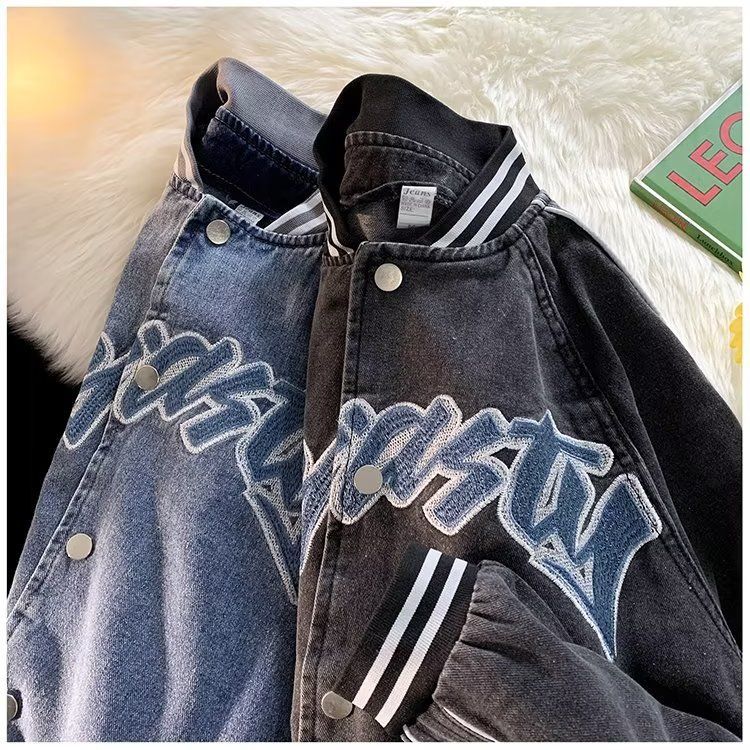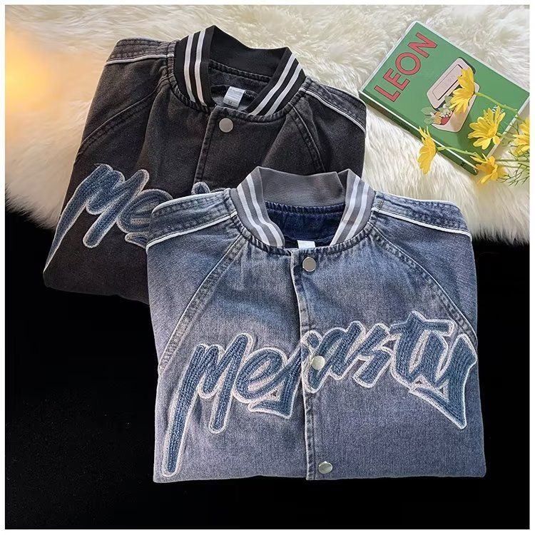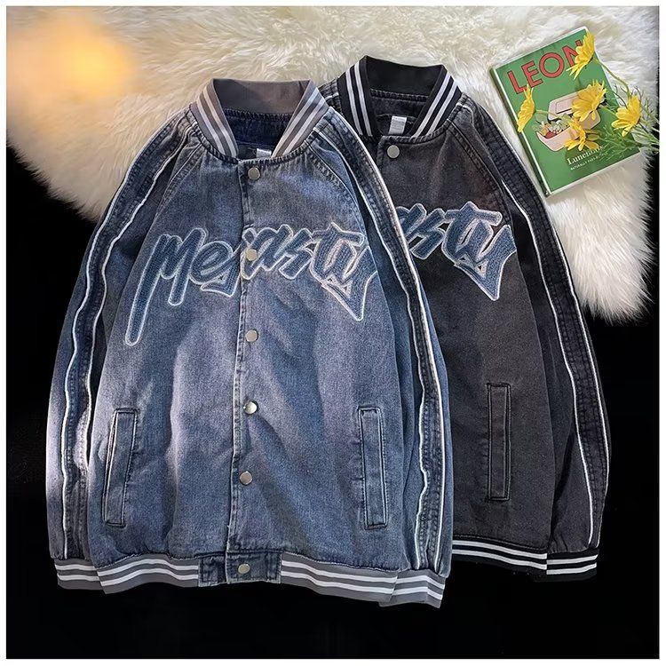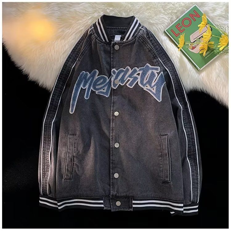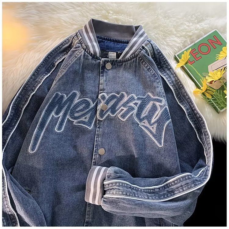 UM có gạo Áo khoác denim nam mùa xuân và mùa thu Hồng Kông quần áo cặp đôi rời bên trong áo khoác bóng chày đẹp trai