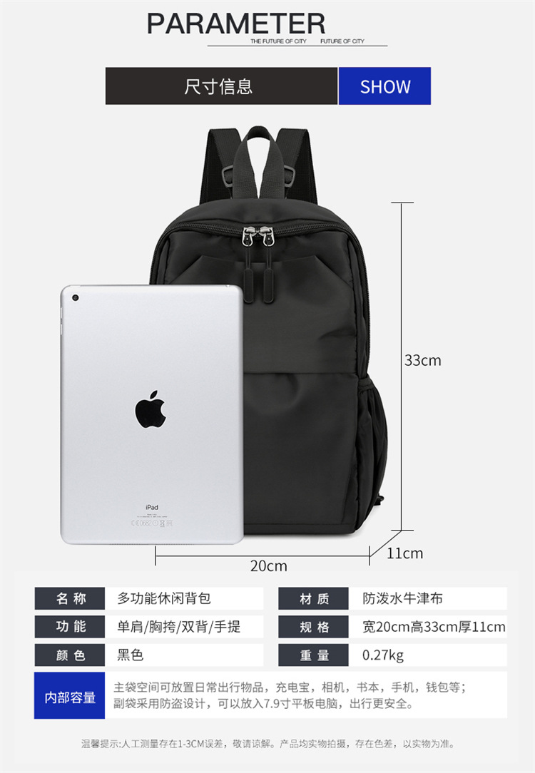 Kích thước máy tính: 10 inch Hoa văn: Màu trơn Kết cấu lớp lót: Polyester Thương hiệu: YOUTHHANG Mã sản phẩm: 1928 Cảnh áp dụng: Sắp xếp hàng ngày Màu sắc: 1928 Đen Thương hiệu riêng được ủy quyền: Có Giới tính áp dụng: Unisex / nam và nữ Năm và mùa có sẵn: Mùa hè 2023 Chất liệu: Vải Oxford Yếu tố phổ biến: nếp gấp Phong cách: Xu hướng đường phố