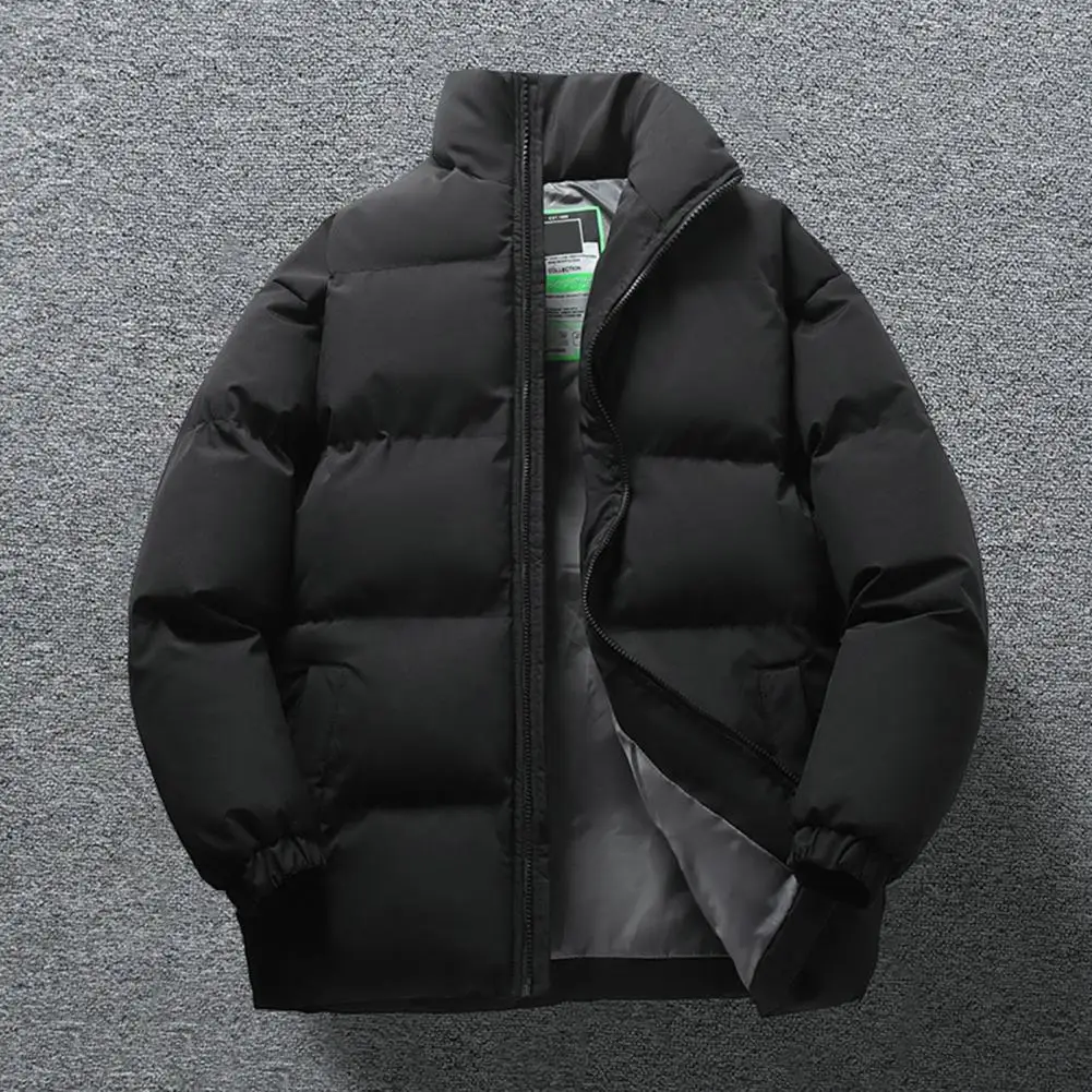 Unisex Winter Cotton Coat Thick Padded Stand Collar Neck Protection Zipper Closure Long Sleeve Solid Color Smooth Couple Outdoor Coat