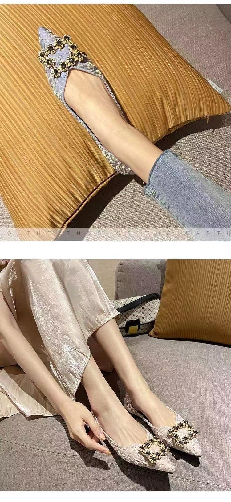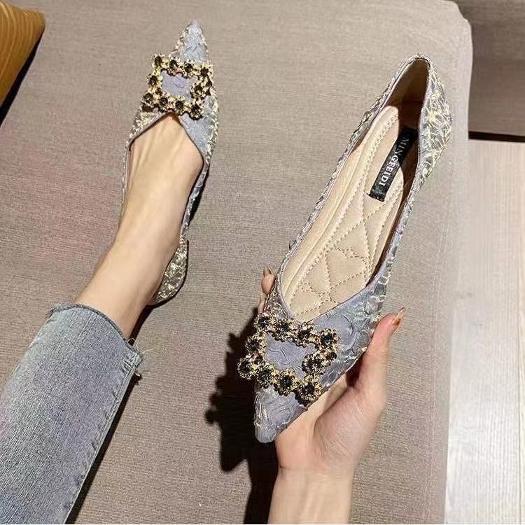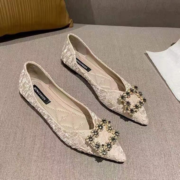 UNMUN2023 mùa xuân và mùa hè mới đế mềm mũi nhọn giày đơn giày Doudou phù hợp với tất cả các nữ giày lưới đỏ miệng nông gió buổi tối