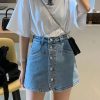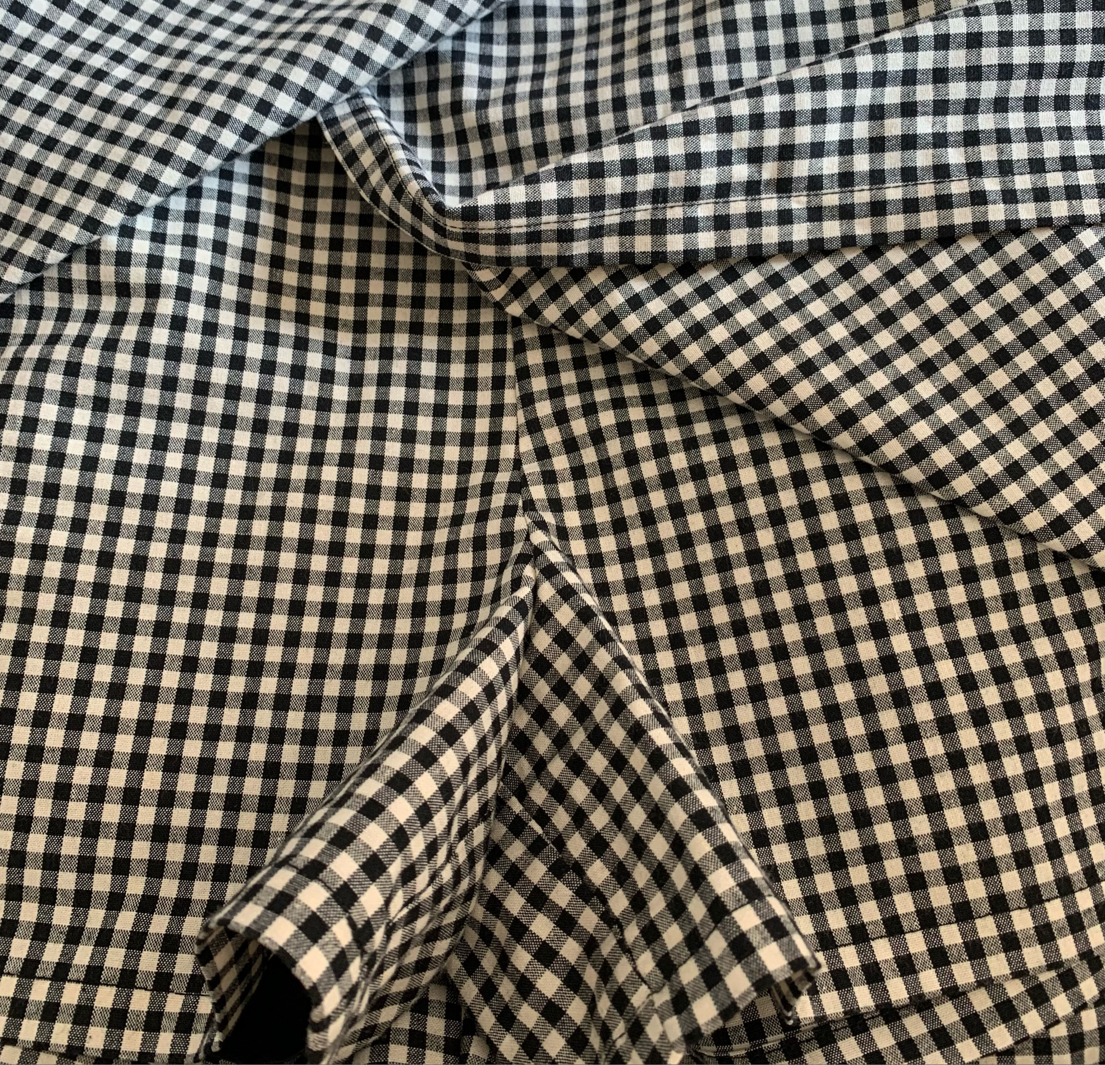 uungchuuu 22SS Đường may không đều hakama ~ váy ngắn lưng cao mỏng kết hợp kẻ sọc đen trắng mùa hè