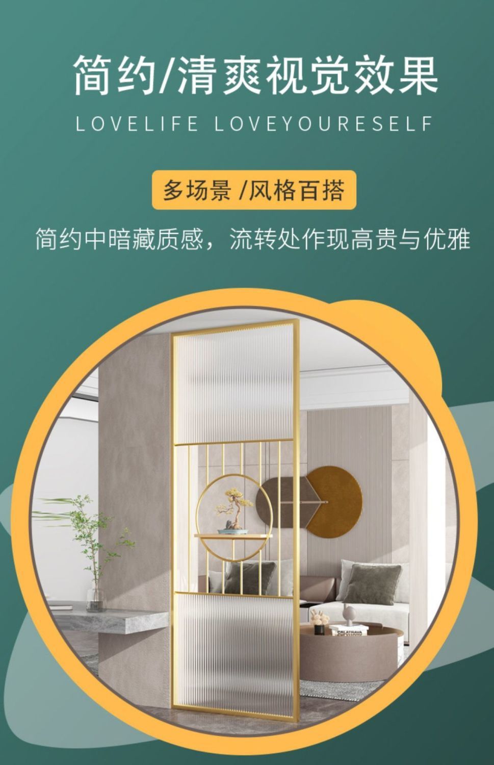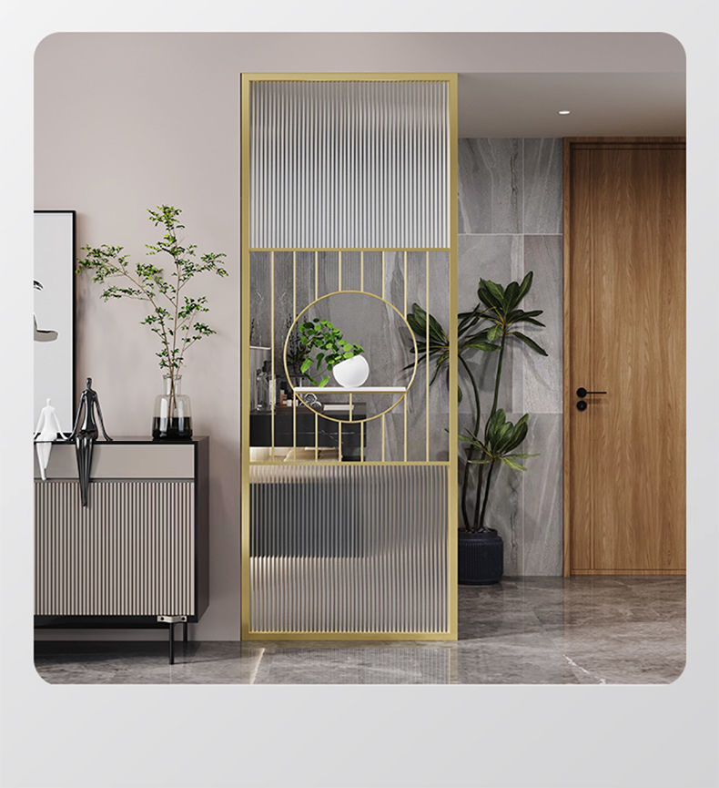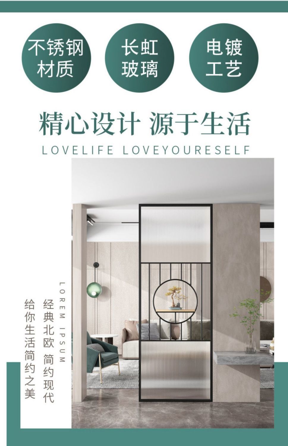Vách ngăn bình phong sắt rèn Trường Hồng kính inox phòng khách đơn giản hiên nhà bàn rửa lưới đèn đỏ sang trọng