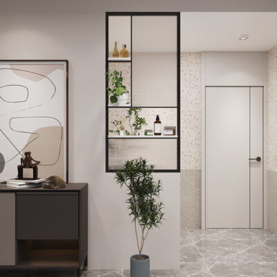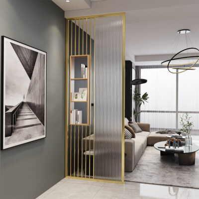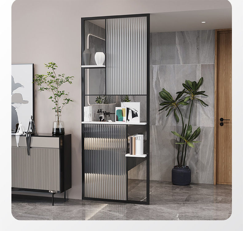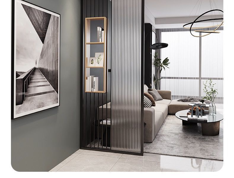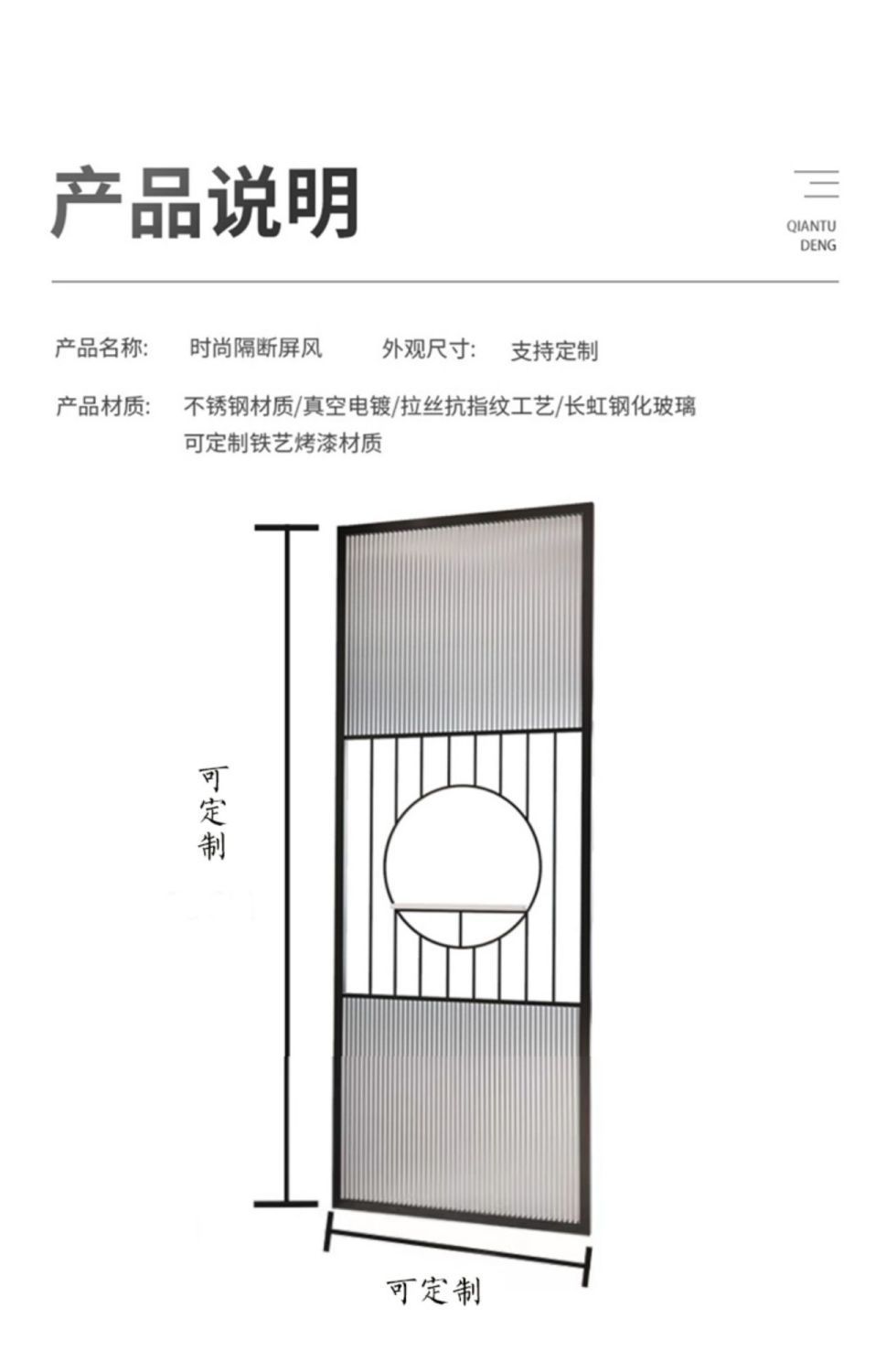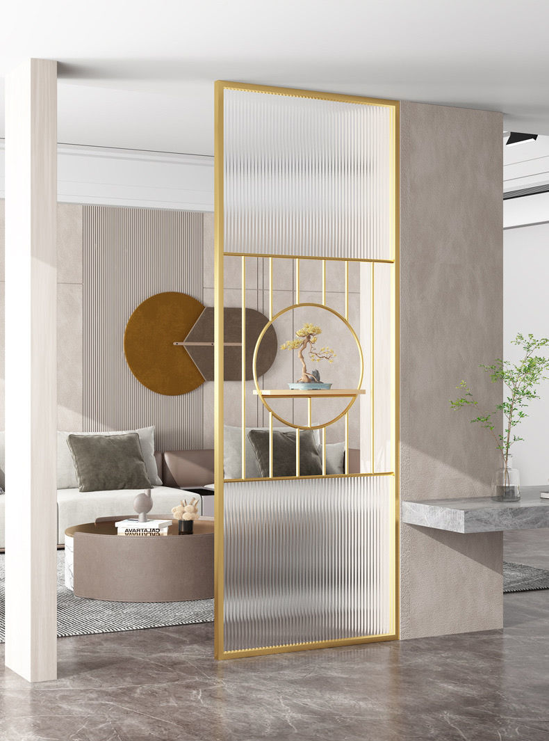 Vách ngăn bình phong sắt rèn Trường Hồng kính inox phòng khách đơn giản hiên nhà bàn rửa lưới đèn đỏ sang trọng