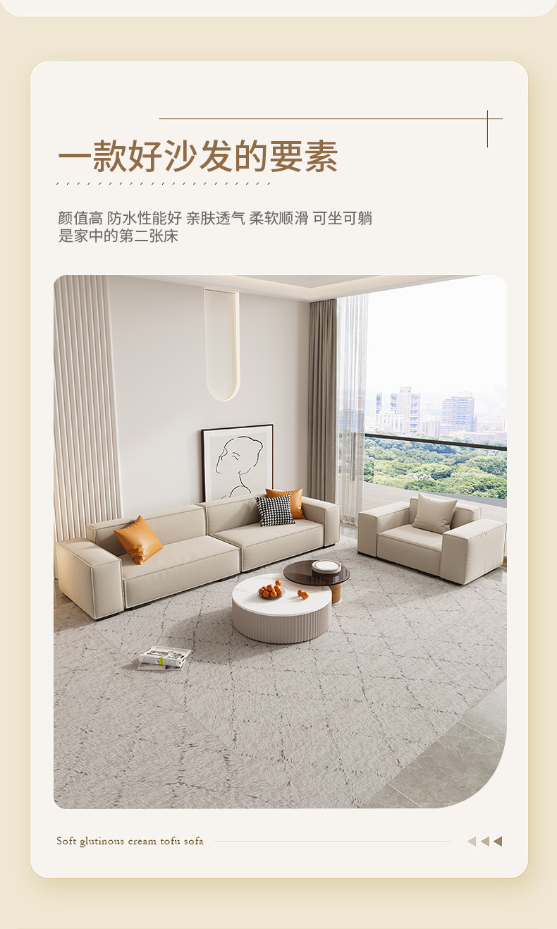 Vải công nghệ không cần giặt căn hộ nhỏ phòng khách ghế sofa bàn cà phê Phong cách Ý Đẹp sang trọng hiện đại đơn giản hàng thẳng đậu phụ