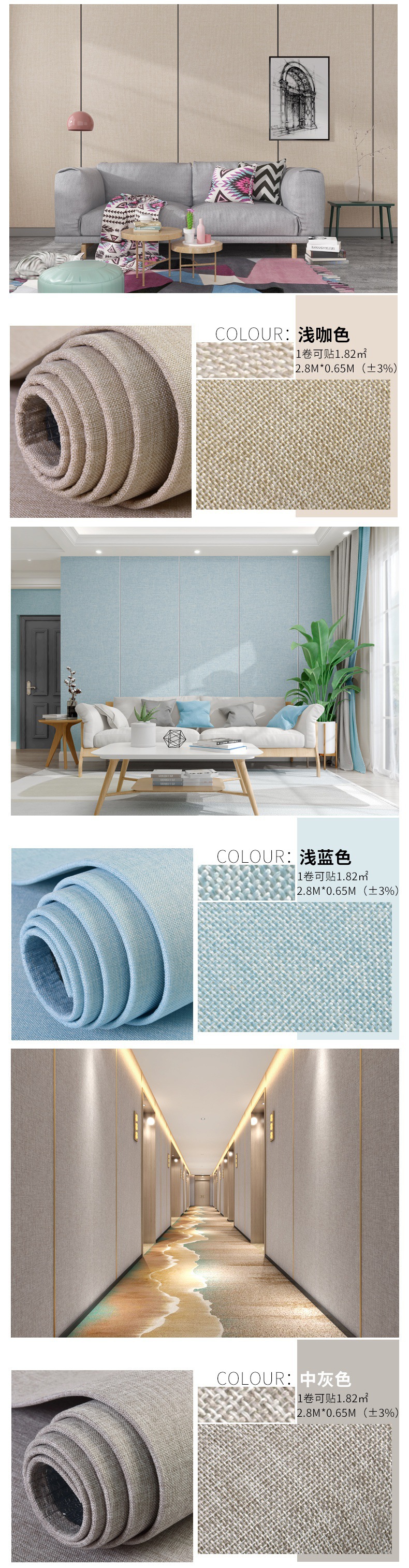 Vải dán tường cách âm dày tự dính chống ẩm chống va chạm vải lanh treo tường phòng khách khách sạn khách sạn phòng ngủ TV phông nền dán tường
