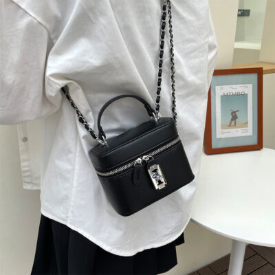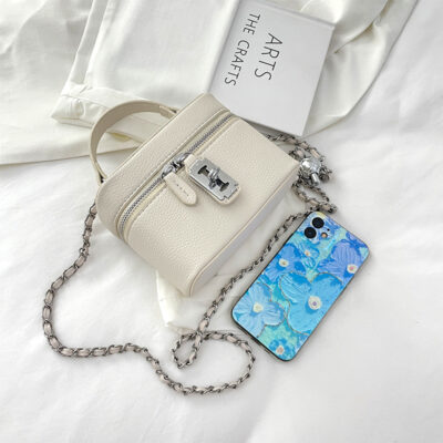 Vải thiều họa tiết dây chuyền khóa hộp túi vuông nhỏ nữ 2023 mới xách tay 1 vai túi Túi xách nữ
