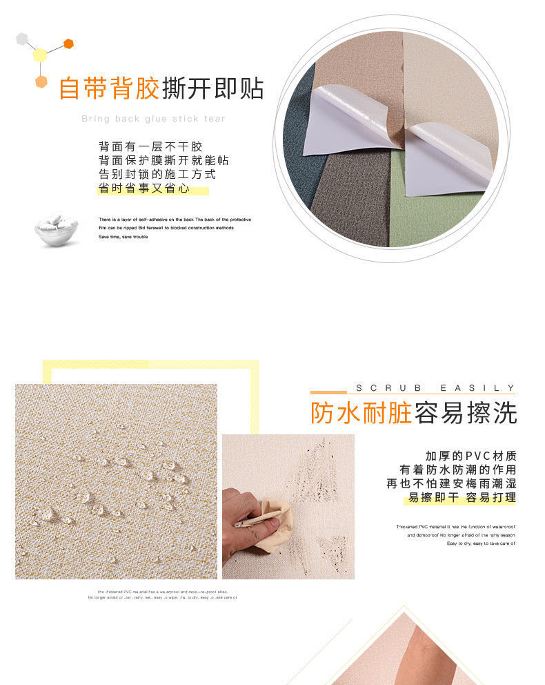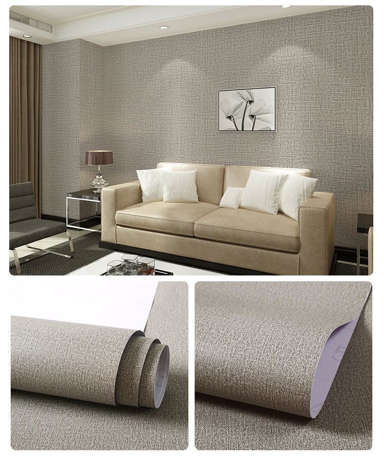 Vải Treo Tường Tự Dán Nhà Dày Giấy Dán Tường Giả Vải Lanh Hoa Văn PVC Phòng Khách Lụa Giấy Dán Tường Cửa Tủ Cải Tạo Nhà Dán