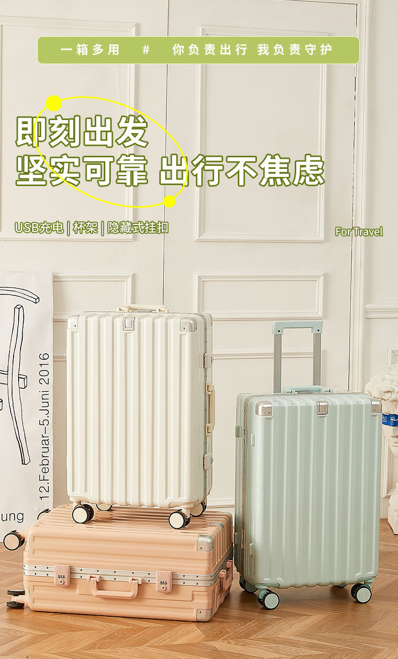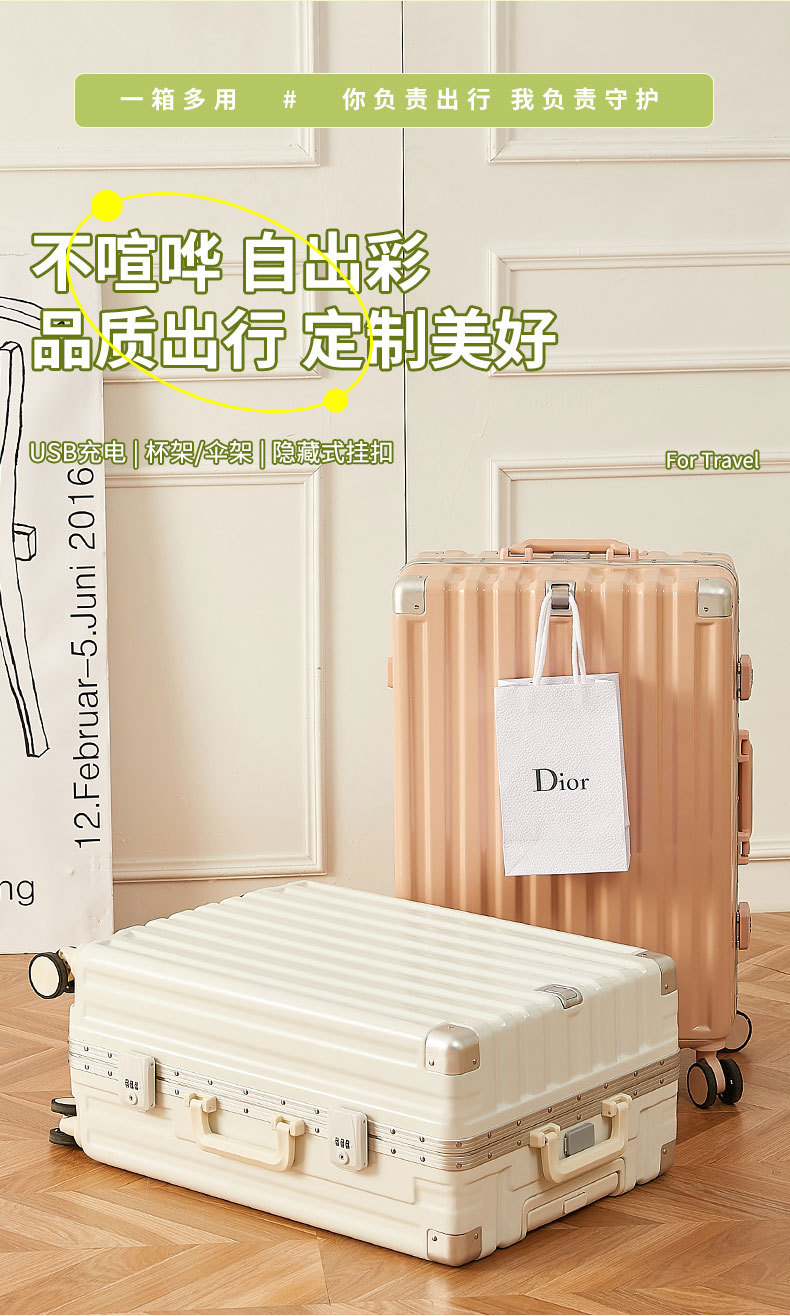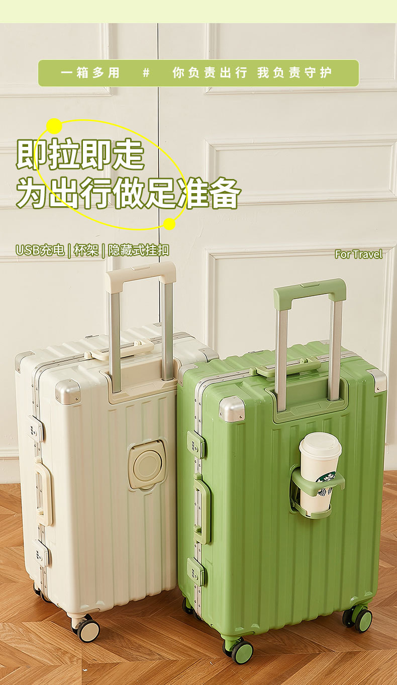 Vali hành lý khung nhôm 24 inch nữ đa năng có ngăn đựng cốc dung tích lớn vali bánh xe đa năng 28 inch nam