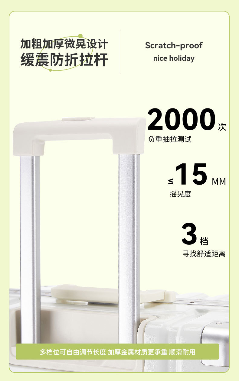 Hoa văn: màu trơn Kết cấu lớp lót: polyester Có lớp giãn nở hay không: Không Số sản phẩm: 906-1 Thương hiệu: Le Shangtu Cảnh áp dụng: du lịch giải trí Màu sắc: trắng/đen/bột ngô/xanh bạc hà/xanh bơ/vàng kem/kem màu vàng Mẫu: 906-1 Kiểu con lăn: bánh xe phổ thông với nhãn hiệu riêng được ủy quyền: Có Giới tính áp dụng: Unisex / cả nam và nữ Cân nặng: khoảng 3,3kg-3,6kg Năm niêm yết Mùa: Mùa xuân 2023 Chức năng: Giao diện USB / Thoáng khí / Chống nước / siêu bền -ánh sáng/kháng khuẩn/chống trộm/có thể lên máy bay/có thể lên máy bay Chất liệu: ABS + PC Kích thước vật liệu: 20 inch/22 inch/24 inch/26 inch/28 inch/28 inch Phương thức mở: loại khóa khung nhôm: khóa mã hóa thông thường Các yếu tố phổ biến : lock/macaron color/macaron color tham gia ngưỡng phân phối: liên hệ số 13926283295
