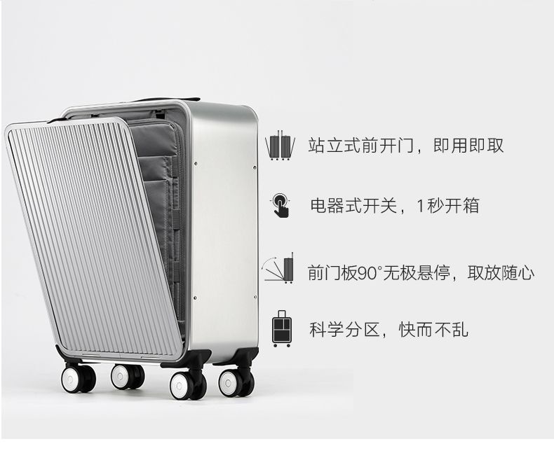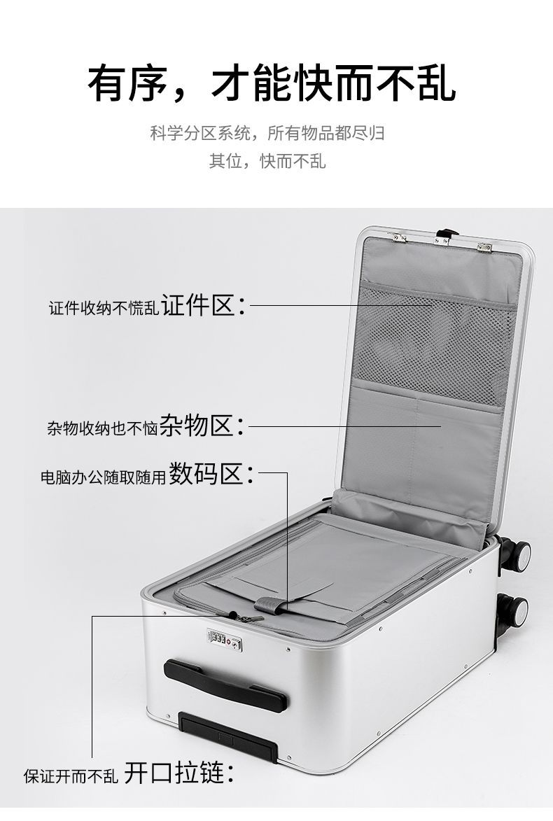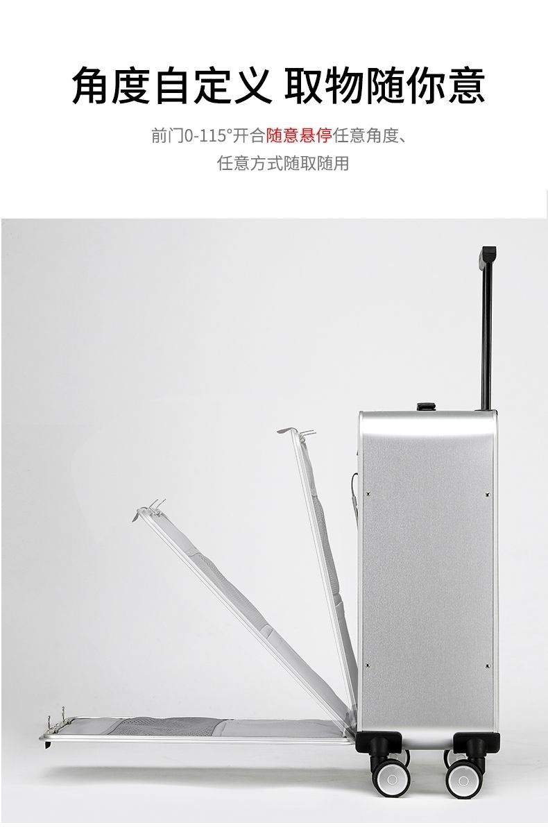 Vali hợp kim hoàn toàn bằng nhôm-magiê nam 20 inch 24 nữ mở phía trước xe đẩy du lịch 26 inch phía doanh nhân mở bánh xe im lặng