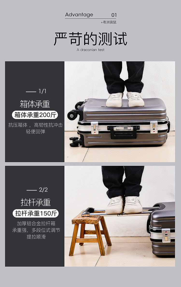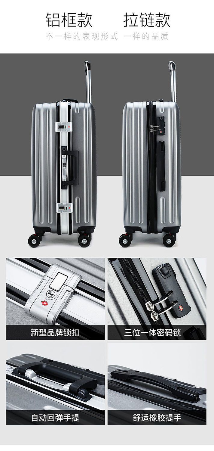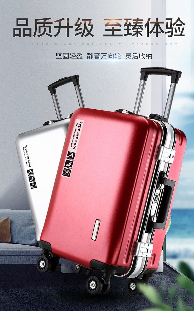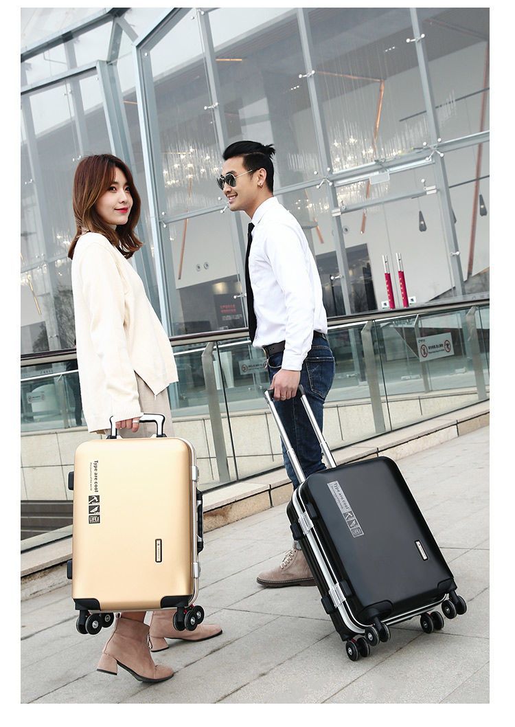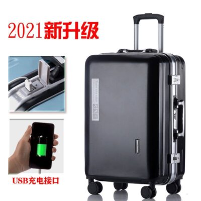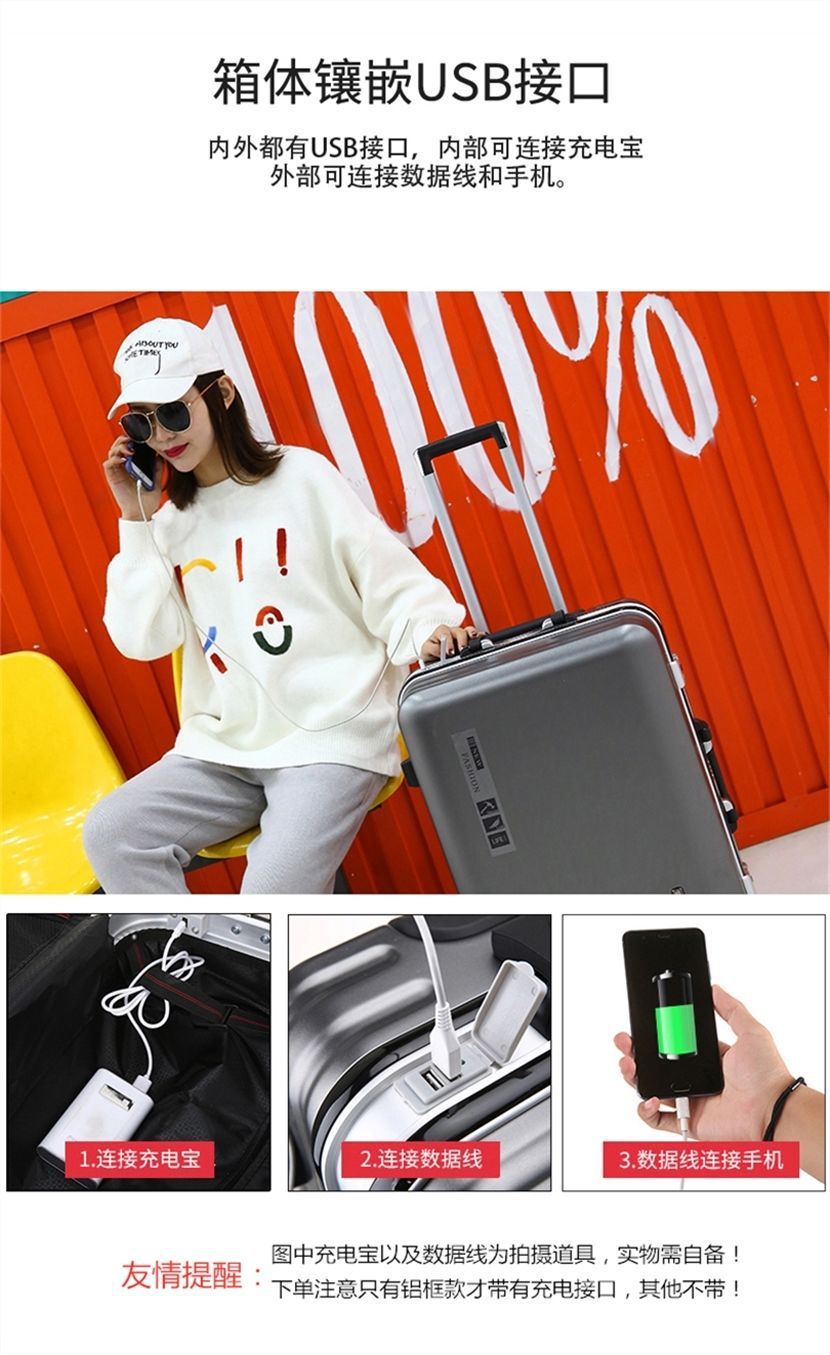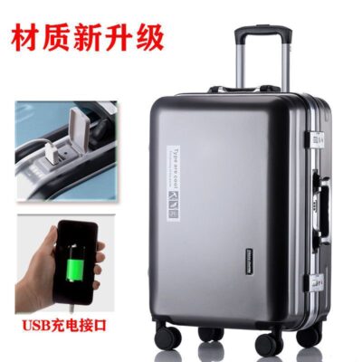 Vali khung nhôm có thể sạc lại Vali sinh viên nam và nữ Bánh xe đa năng mật khẩu hành lý Xe đẩy nam lên máy bay