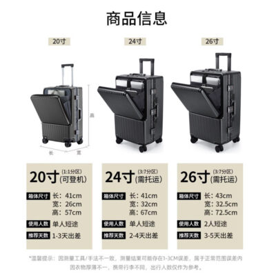 Vali khung nhôm mở bên hông vali xe đẩy sức chứa lớn 24 inch vali dày đa chức năng dành cho sinh viên vali da nam và nữ
