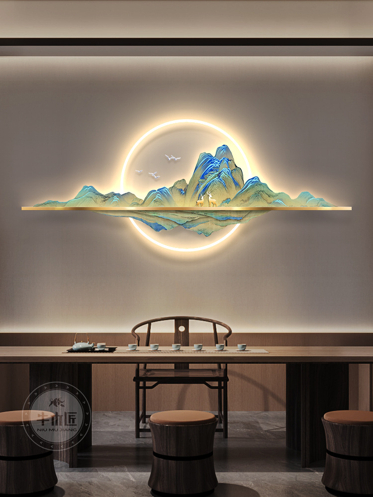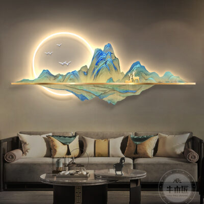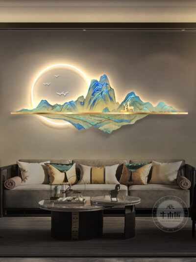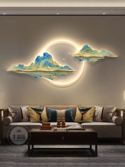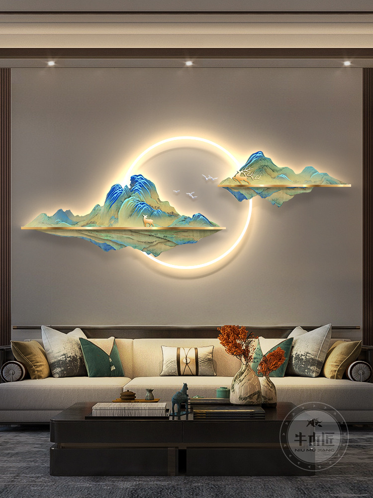 Vạn dặm sông núi tranh treo tranh phong cách Trung Hoa mới phòng khách tranh trang trí đèn led sofa nền tranh tường tranh phong cảnh trang trí tường