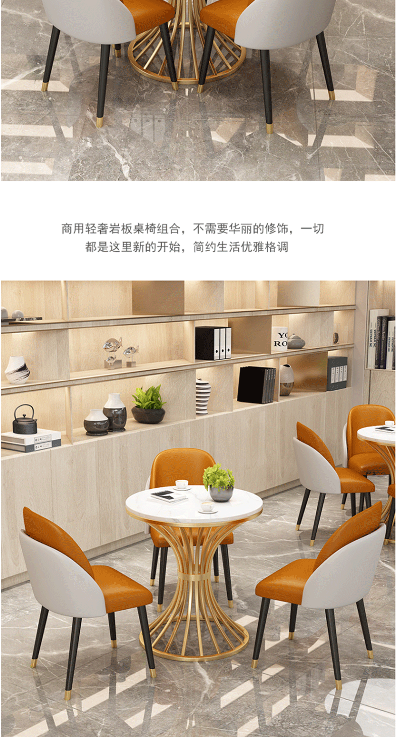 Văn phòng bán hàng đàm phán bộ bàn ghế tiếp tân kết hợp ánh sáng Bắc Âu phiến đá sang trọng bàn tròn nhỏ nhà hàng cafe bàn ghế ăn thông thường